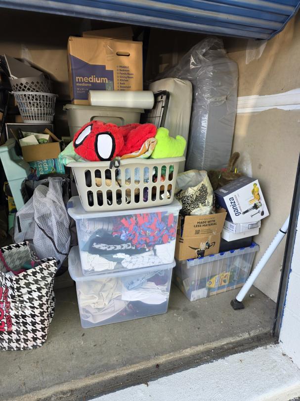 This unit appears to contain…totes, boxes, furniture and misc items.