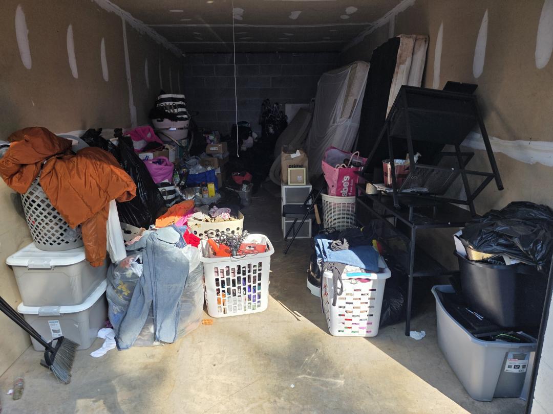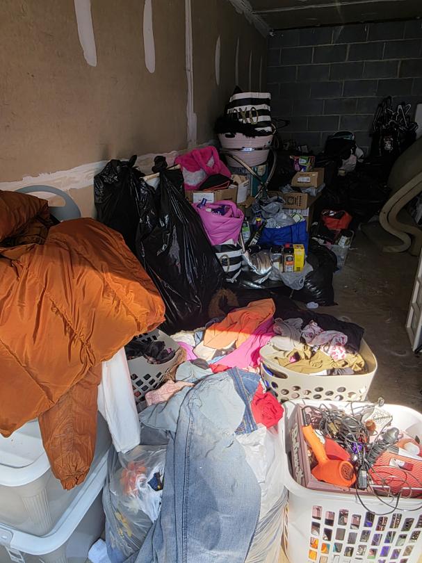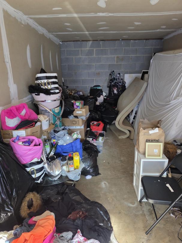 This unit appears to contain…totes, clothes, furniture and misc items