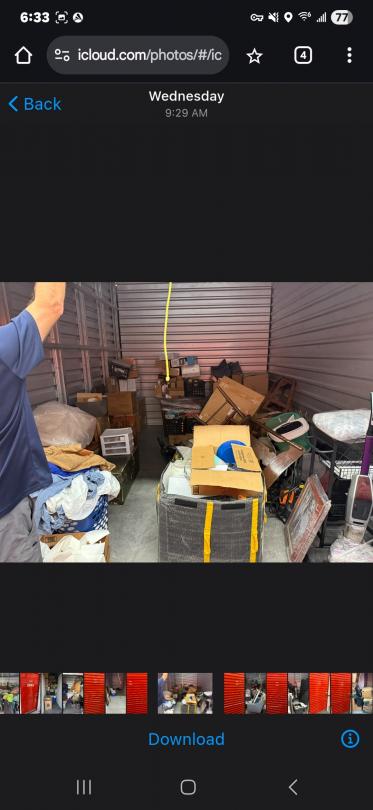 This unit appears to contain…BOXES, SHELVES, CLEANING TOOLS, TRUNK, PLASTIC ORGANIZERS, FURNITURE, BAR STOOLS, CLOTHES, PLASTIC CRATES