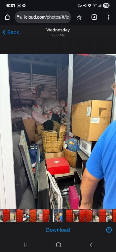 This unit appears to contain…BOXES, MICROWAVE, BAGS, WICKER BASKET, WALL ART, STEP LADDER, COUCH, SHELVING, TOTES, TABLE