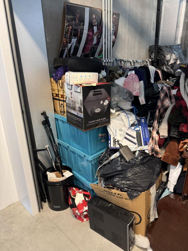This unit appears to contain…appears to have clothing , shoes, music equipment