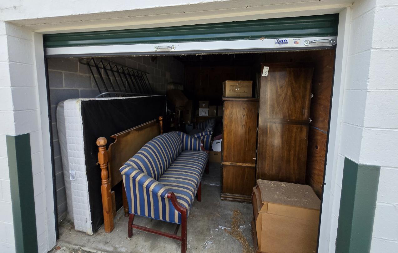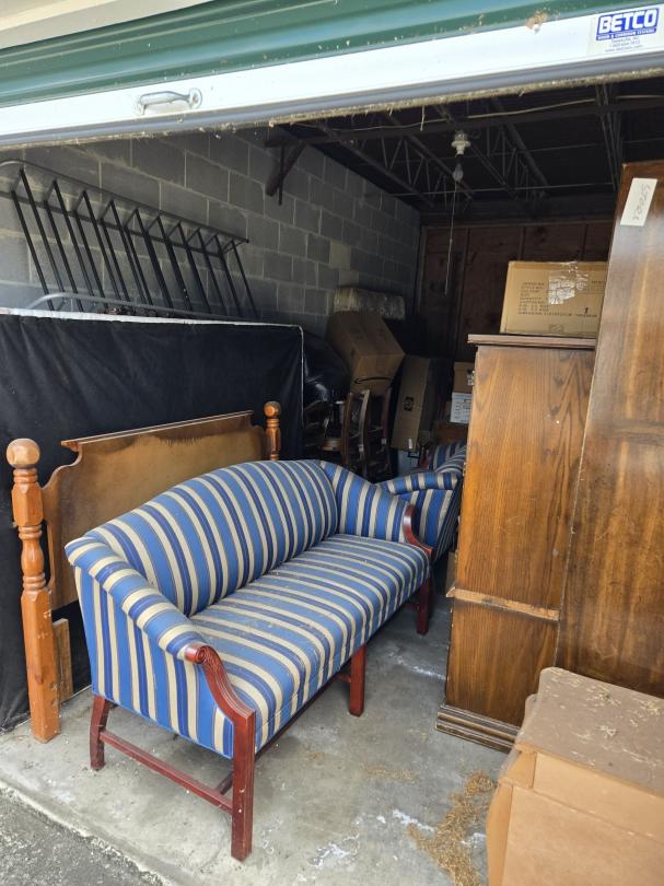 This unit appears to contain…Couch, chair, headboard, box spring, chairs, boxes, bedroom suite furniture, entertainment center