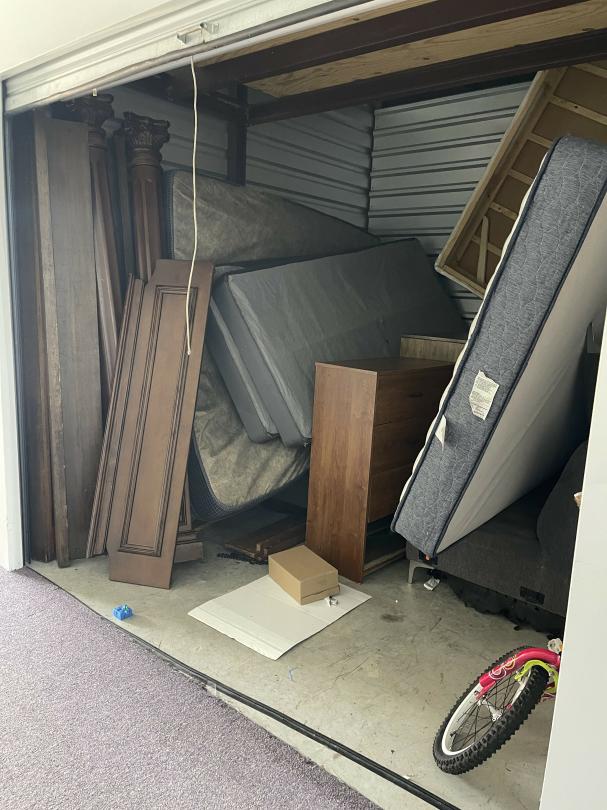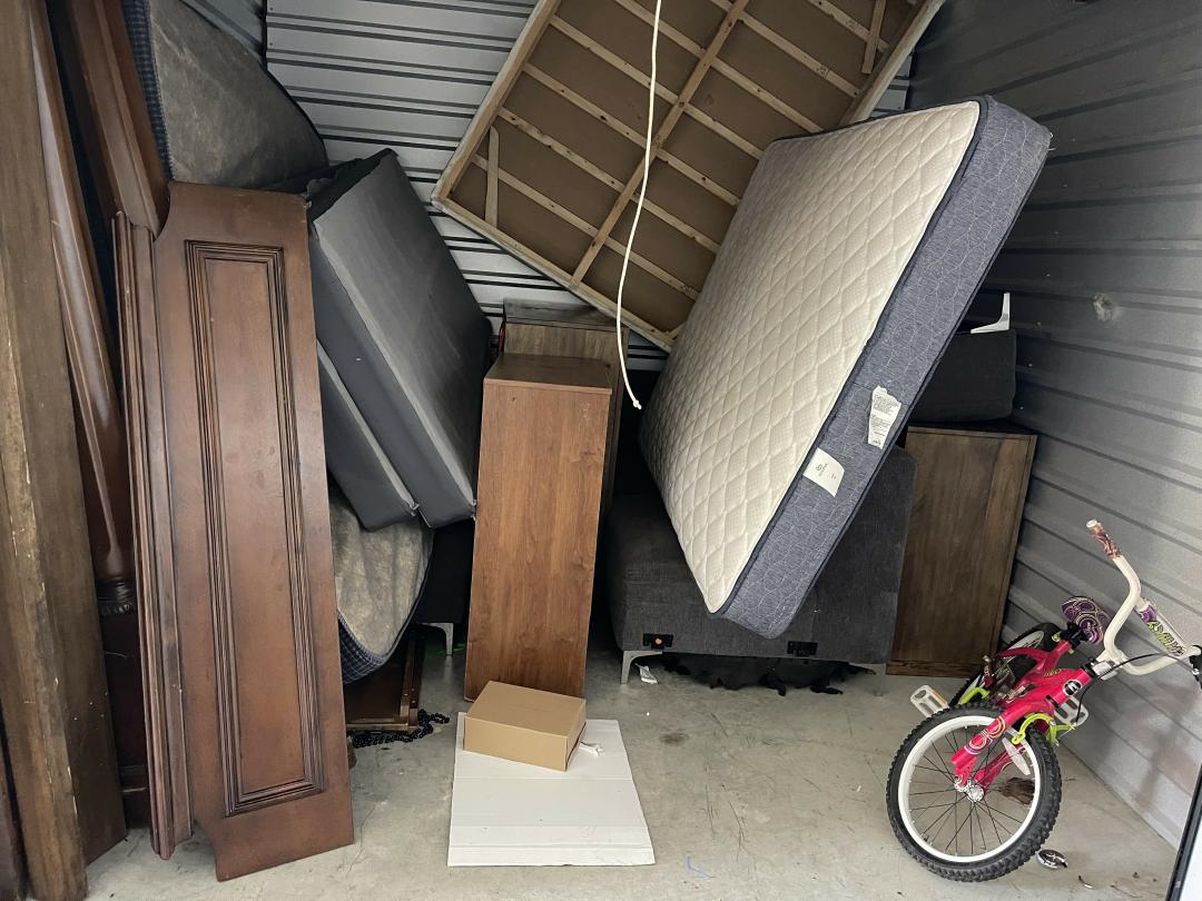 This unit appears to contain…Bed frame, Kid bike, Sofa, Dresser, Mattress,