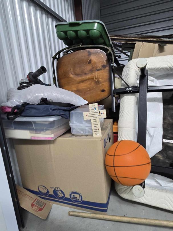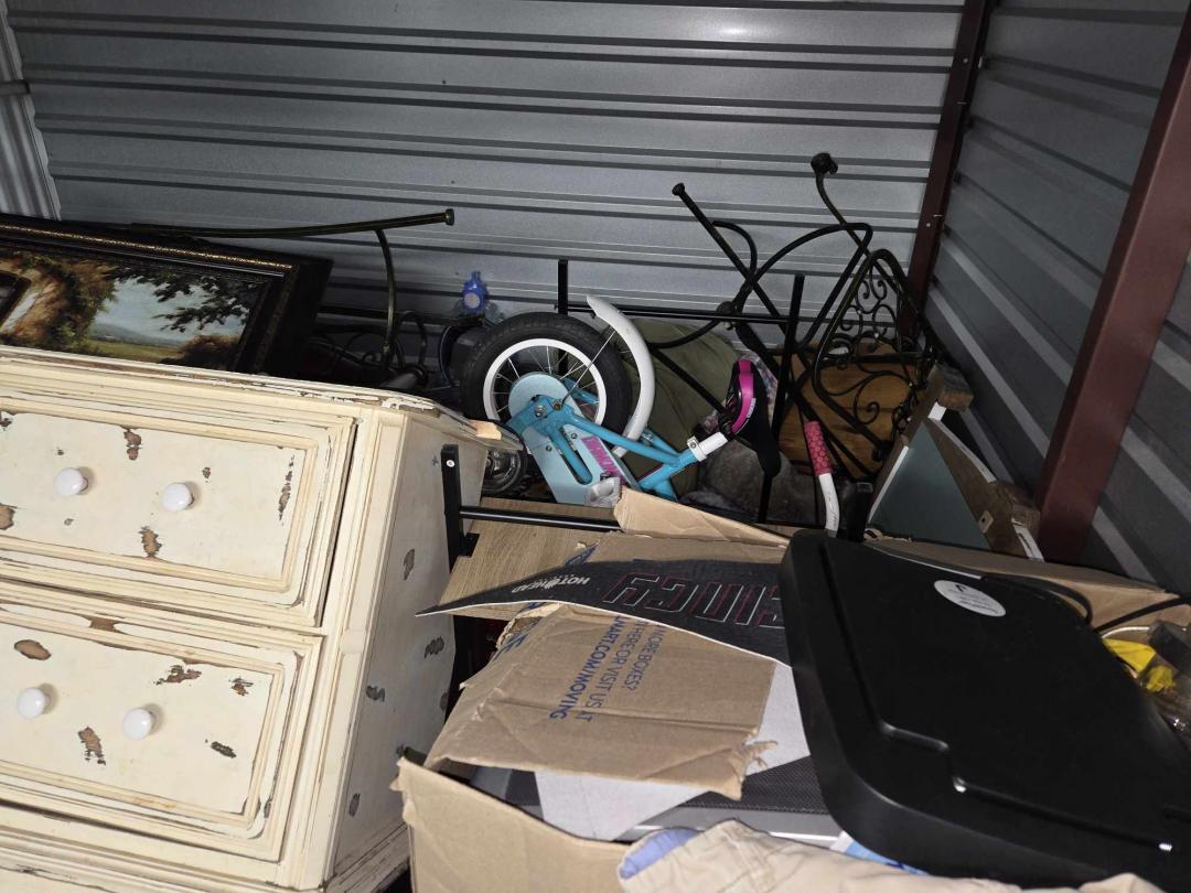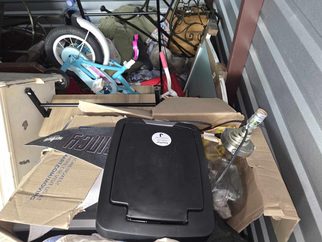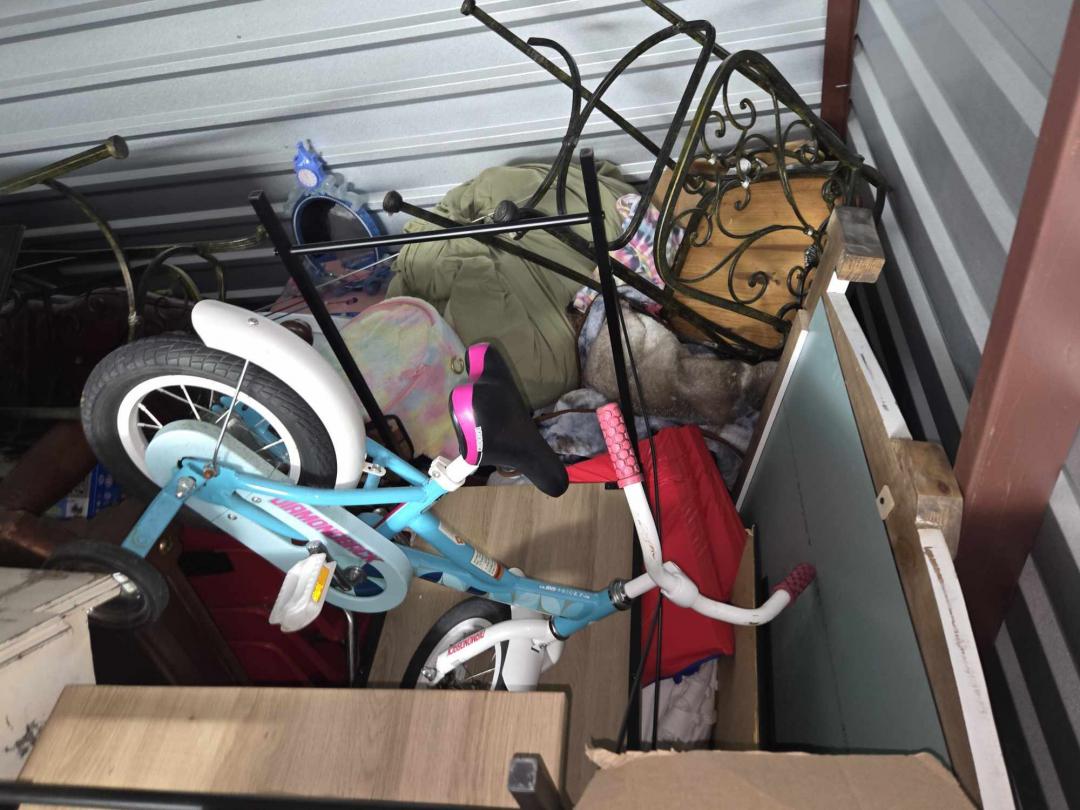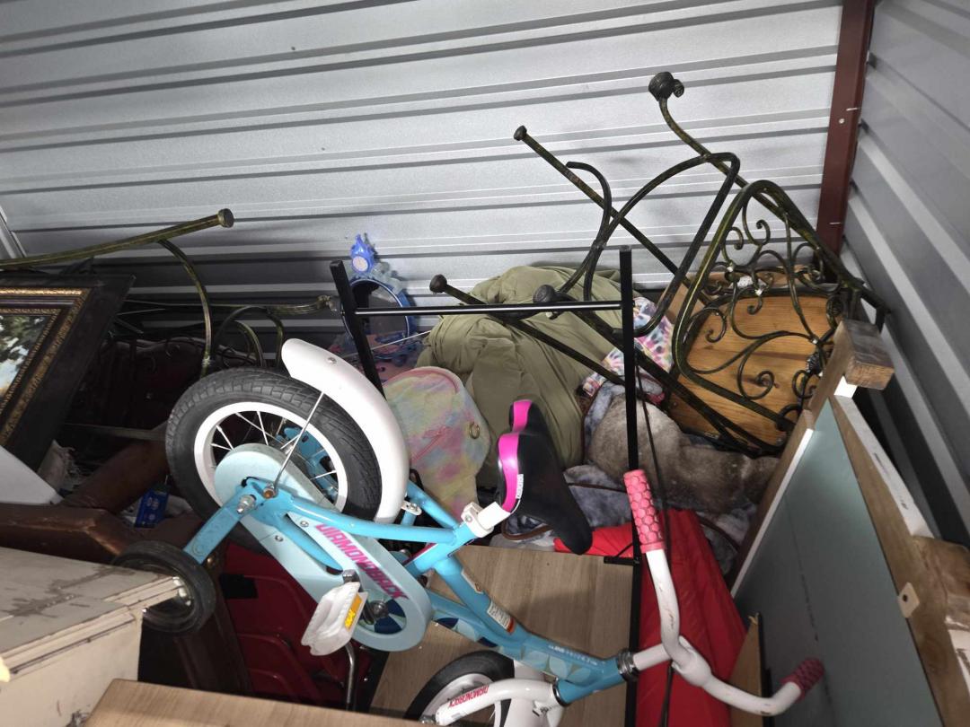 This unit appears to contain…bikes, bar stools, toys, chair