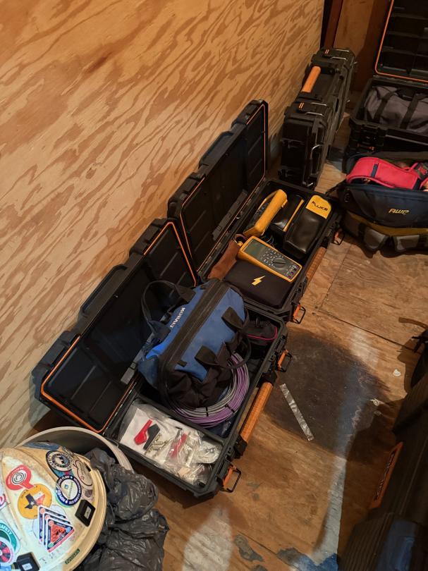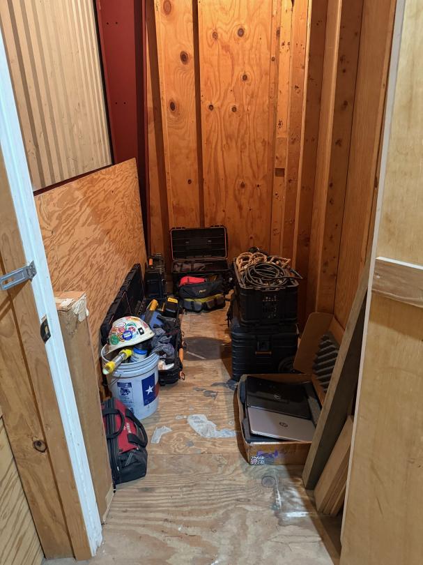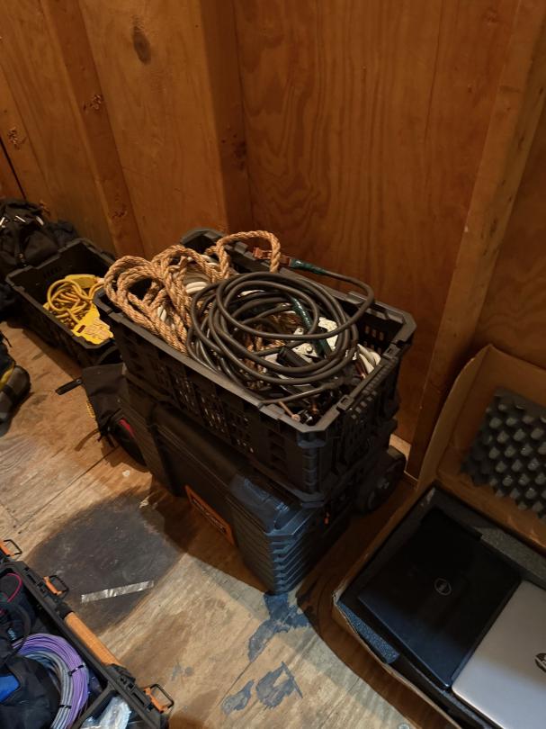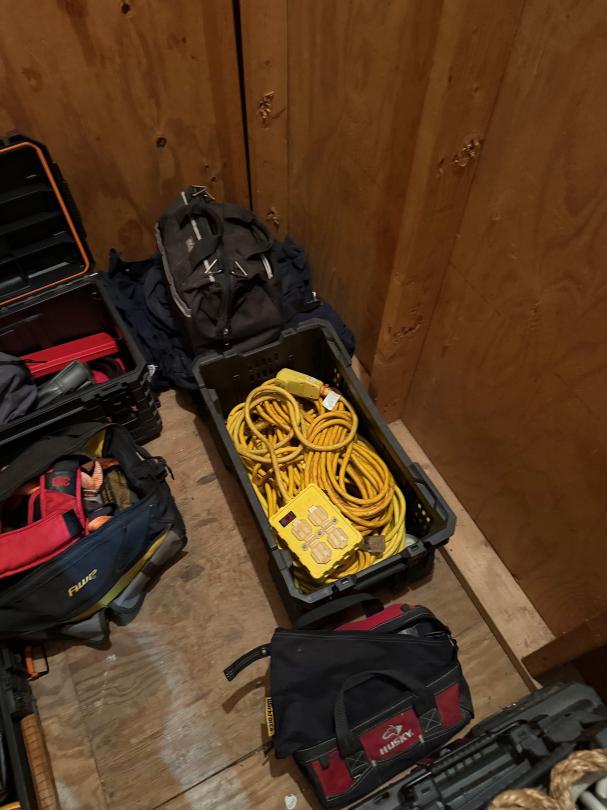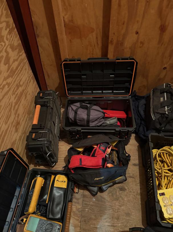 This unit appears to contain…2nd floor unit. Stair access only. Laptop computers, electrical supplies, hard hat, tool boxes, Fluke meters, power cords.