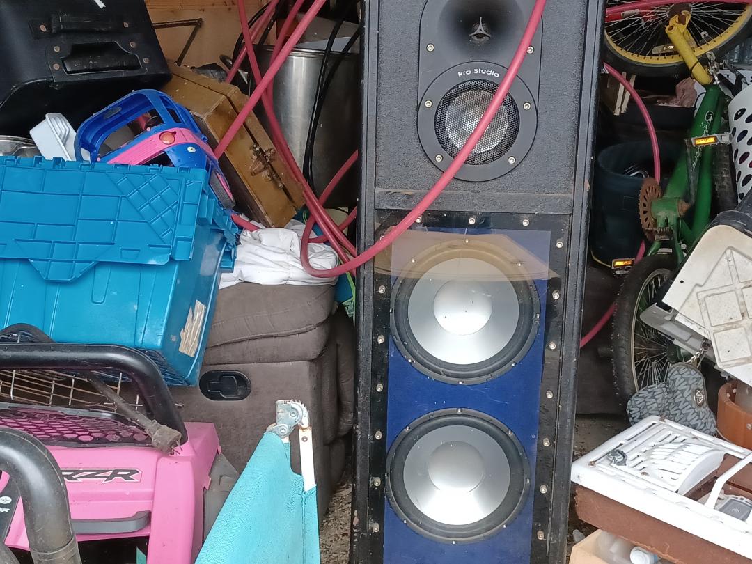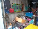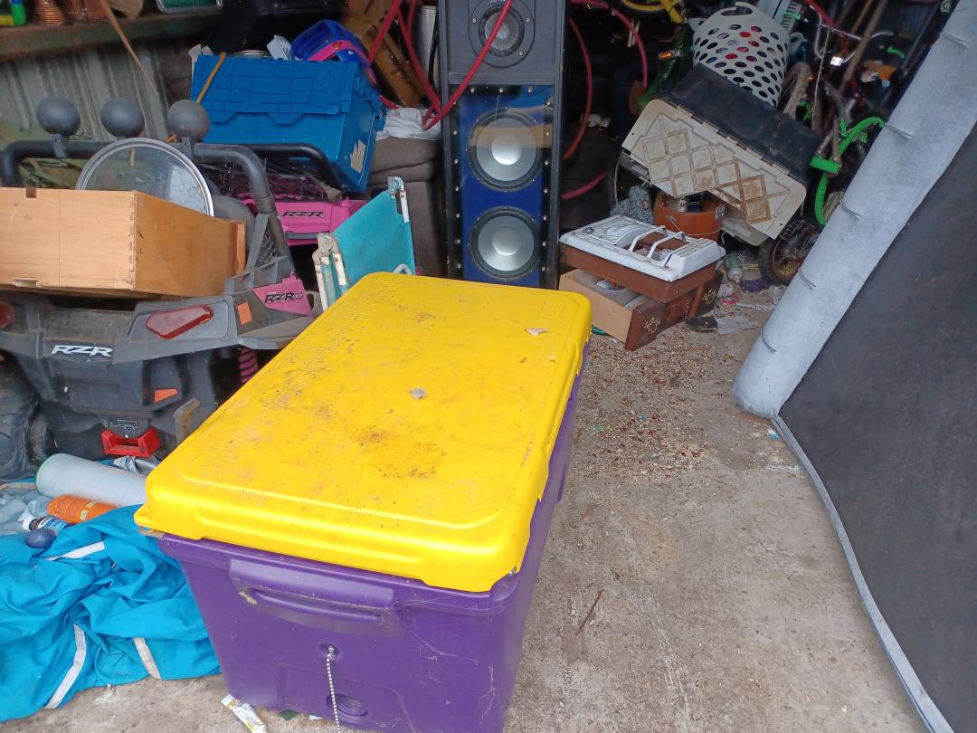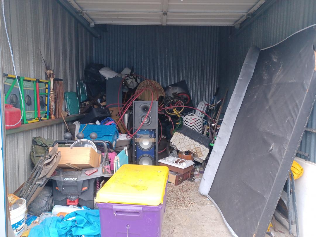 This unit appears to contain…Headboard, speakers, pots, bikes, outdoor chairs, cooler, fan, possibly couch, kid's jeep, folding table and an air condition unit