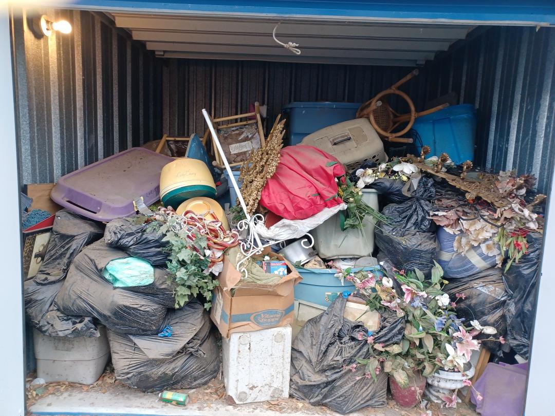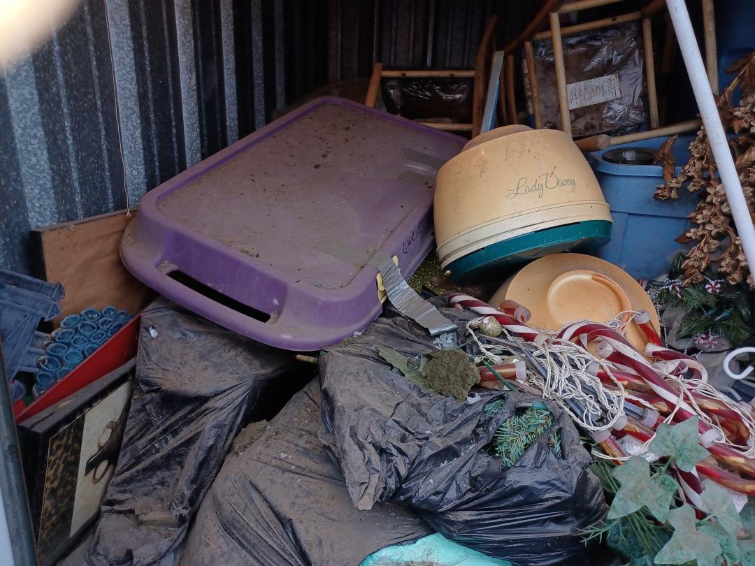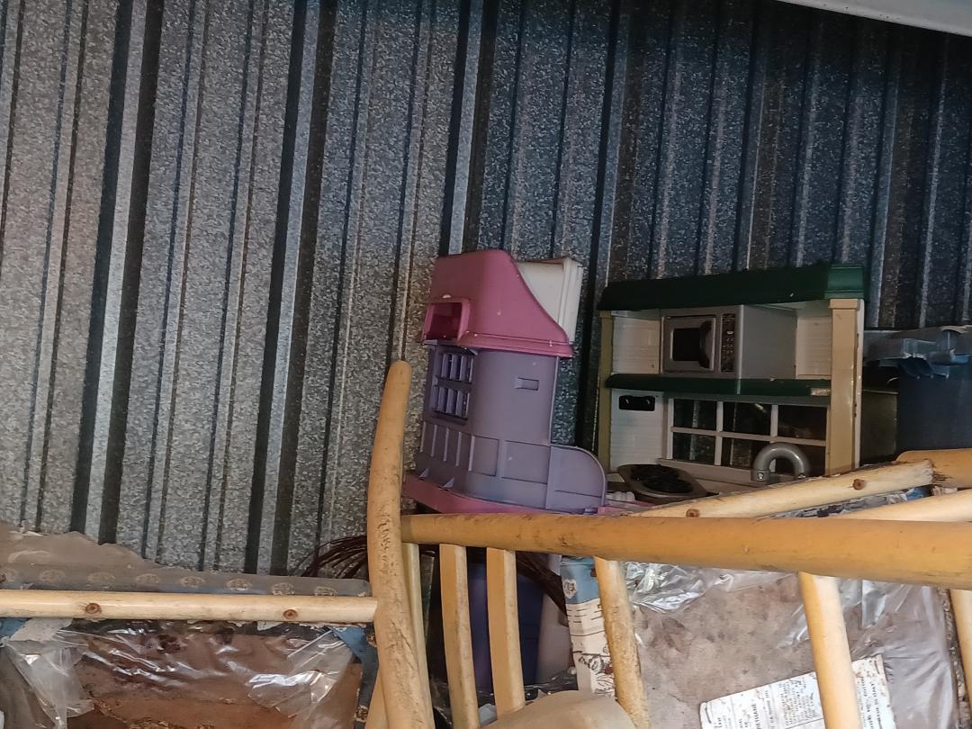 This unit appears to contain…Bags, totes, chairs, Christmas decor, pictures, dog cage, dishes, mirror, kid's play kitchen, wall decor, Lady Dazey hair dryer