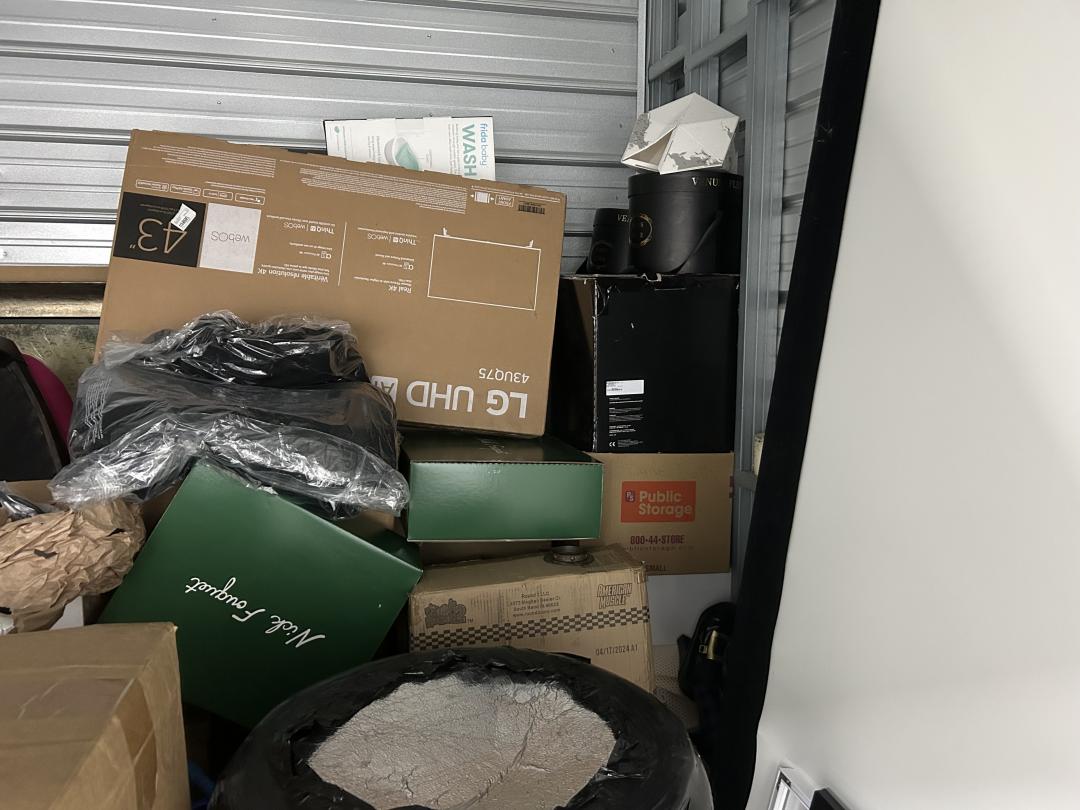 This unit appears to contain…TV,Construction Supplies,Chairs,Decor,Plastic Bags,Plastic Containers,Misc. Boxes,Misc. Items,Baby Furniture,Artwork