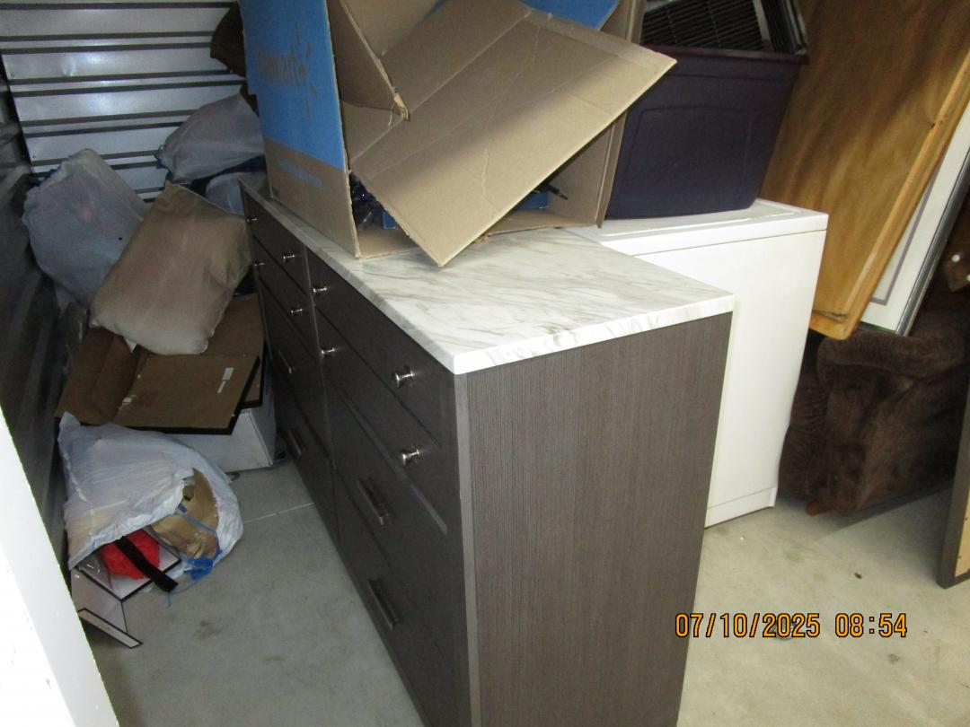 This unit appears to contain…washer, dryer, dresser, couch, boxes, totes