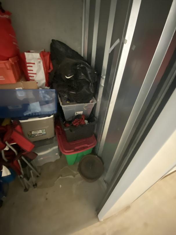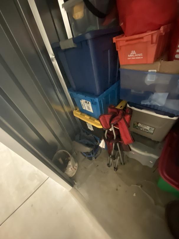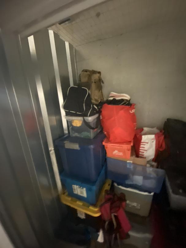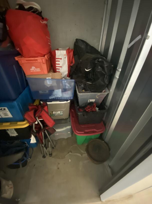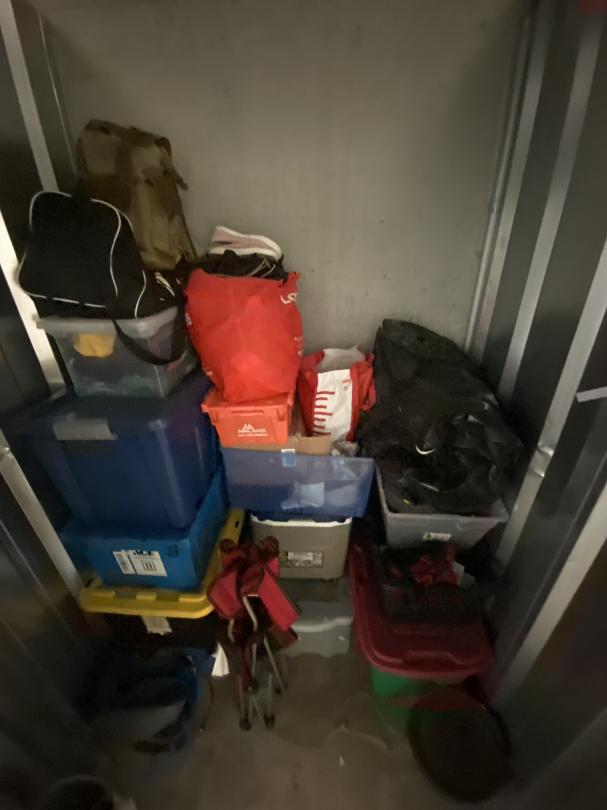 This unit appears to contain…totes,boxes, bags, cloths, shoes