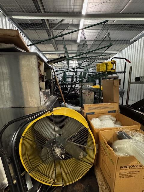 This unit appears to contain…Unit May Contain: bars & stools, chairs, fryers, pots and pans, metal tables, commercial kitchen equipment, ice machine, disposable cups, shelves, step stool, fan