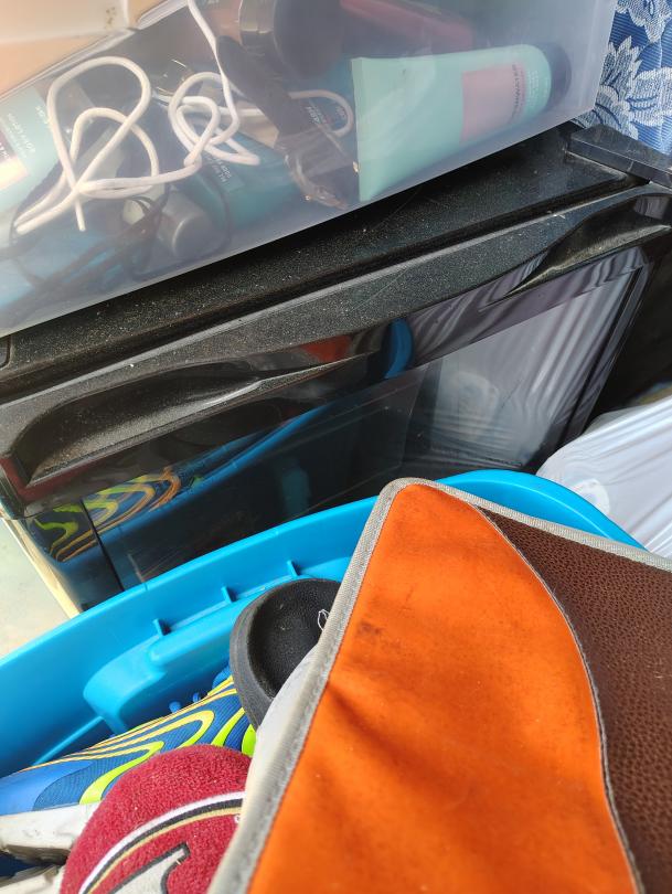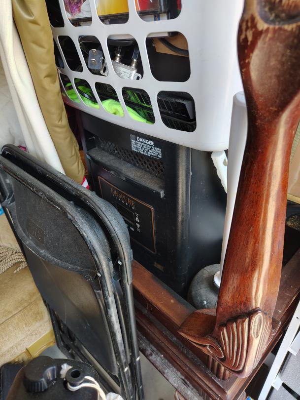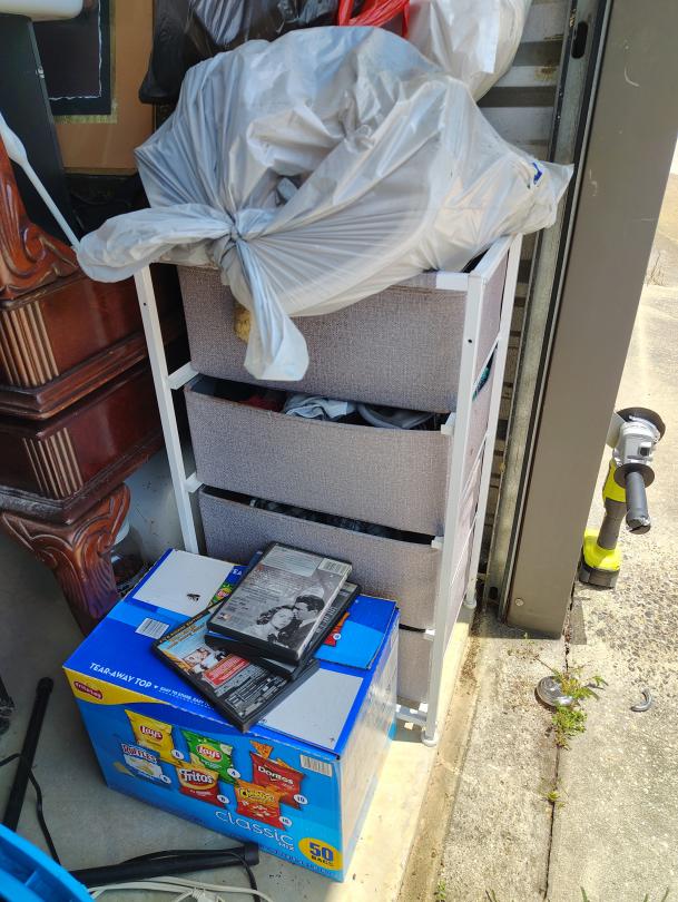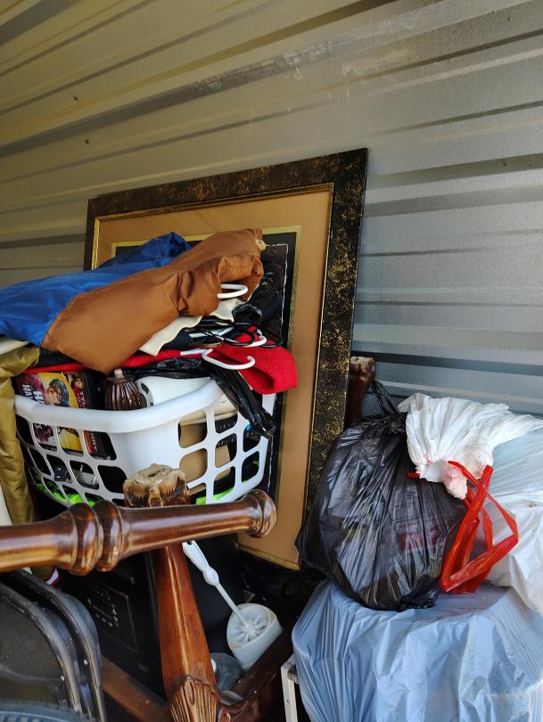 | Tags: | Crawfish Pot and Burner, Fan, mini fridge, shelving unit, CD's, Chairs, Duffle bags, End Table, Painting, Play Station 2, Propane Tanks, Rug, Sofa, step stool |