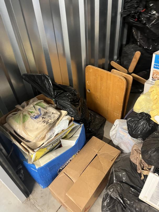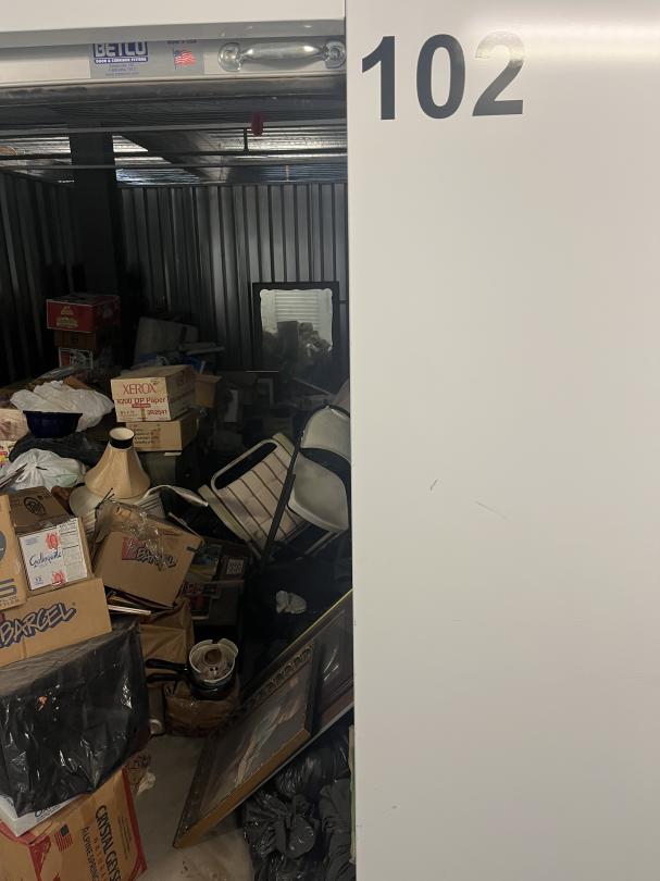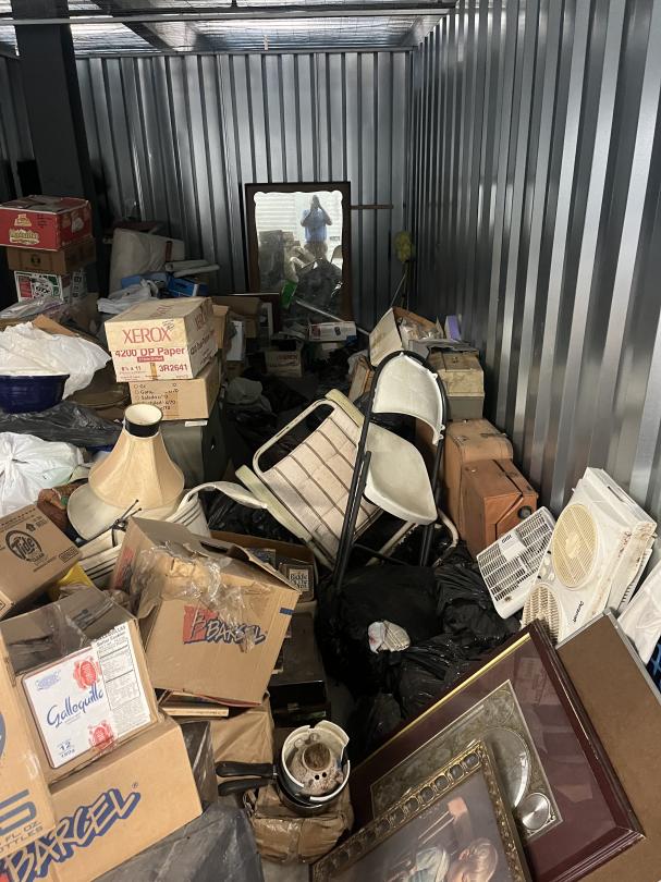 This unit appears to contain…books, chairs, lamps, mirror, desk, tools, fan bags