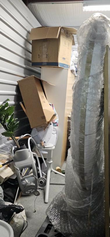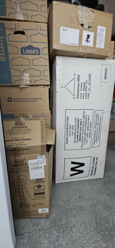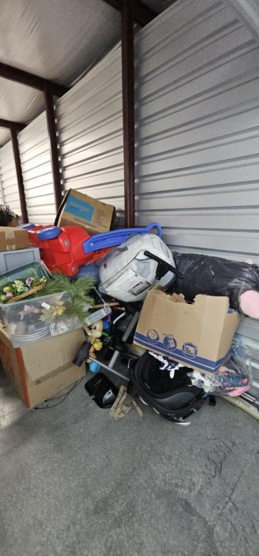 This unit appears to contain…dresser, cabinet, Boxes, Christmas items, Children toys, high chairs, decor, totes