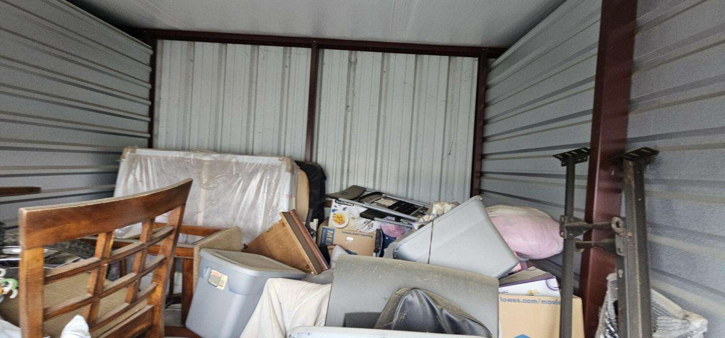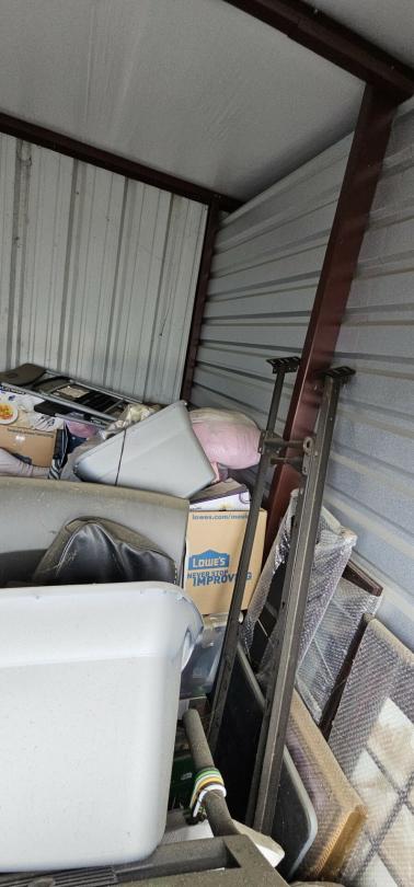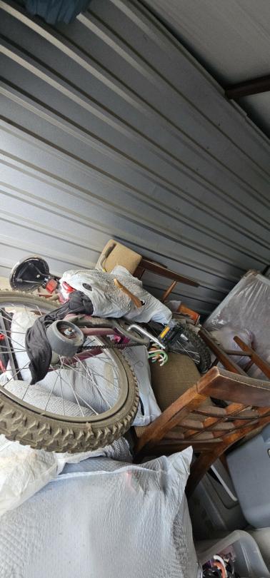This unit appears to contain…Desk, Mattress, Children's items, artwork, totes, boxes , dresser, videos, desk, chairs Bikes