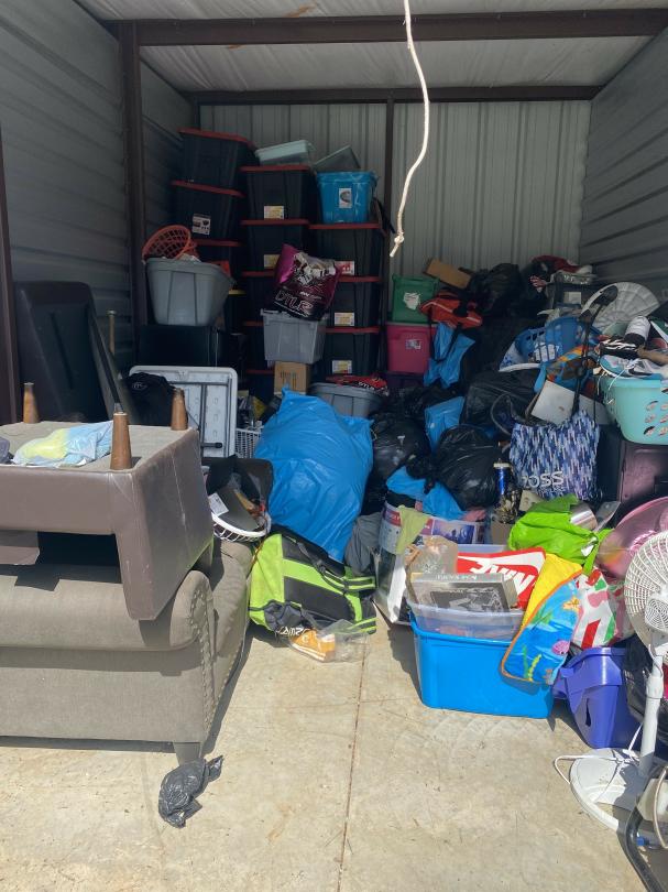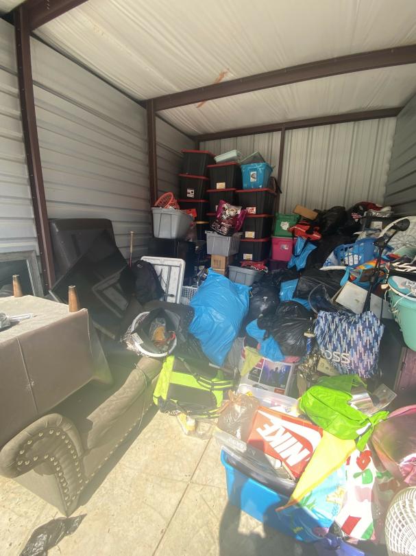 This unit appears to contain…TV,Couches,Decor,Plastic Bags,Plastic Containers,Misc. Boxes,Clothing,Misc. Items,Suitcases
