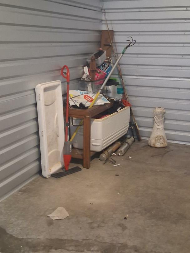 Auction Terms Buyer acknowledges that he/she is bidding on ALL items within the unit and ALL items must be removed and the unit must be left clean. Buyer must bring photo ID and receipt and must pay cash for the unit in the amount of his/her highest bid. Buyer must remove the goods in 48 Hours or the goods will become property of the storage facility, unless the Buyer signs a lease agreement for said unit, and pays cash for the current month's rent. If items are left you, the Buyer, will be blocked from future bidding and your deposit will be forfeited. Items must be picked up during business hours only. It is the Buyer's responsibility to return all personal papers, photos, legal documents, tax returns, bank statements, yearbooks, etc. to the manager to return to the customer. Facility manager will collect a $100.00** cash only cleaning deposit, and will be refunded upon the following, removed all items from unit, sweep unit out, leave the unit in clean/working order. NO DUMPSTER PRIVILEGES ** Unit will be inspected by the site manager before deposit is returned.