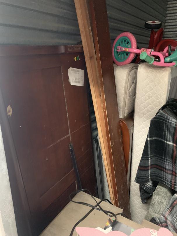 This unit appears to contain…Sofa, Queen Mattress and Box Springs, Sleigh Bed, Night Stand, Tricycle, Large Mirror.