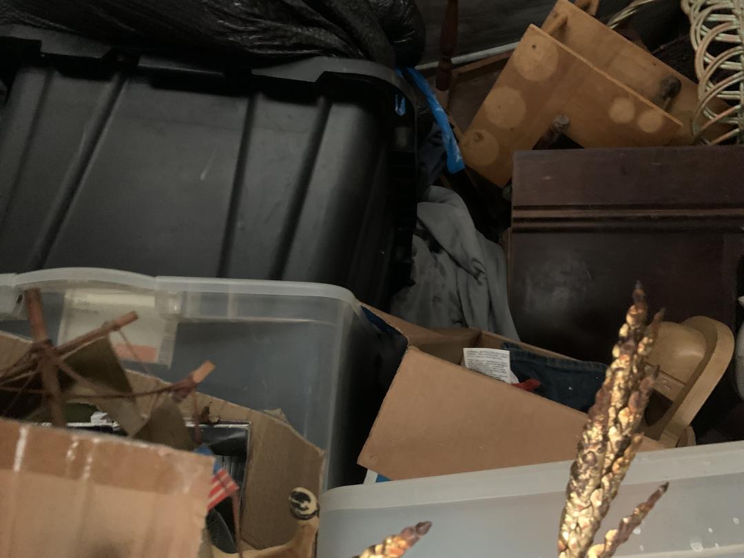 This unit appears to contain…Double Stack Tool Box Lamps Electric Yard Equipment Bed Frame Wooded Coffee Table Wooded Cabinet Extension Cords Misc. Totes