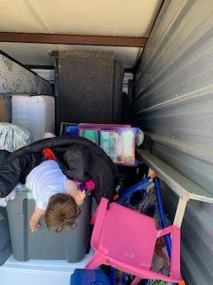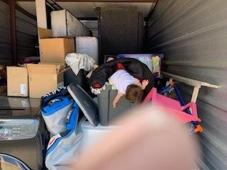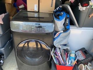 This unit appears to contain…Drive-Up Samsung dryer Samsung washer 15 pc tool kit Double Mattress&frame Luggage child toy box (3) Flat screen TV couch bed side table 2 shelves child toy's wall art home decor water inflatable Barbie Spiderman mini fridge misc totes, boxes, bags