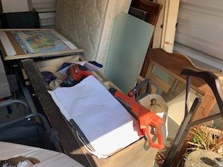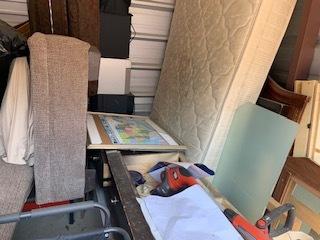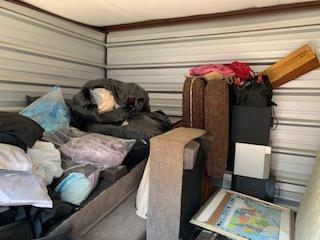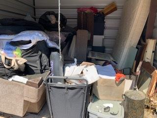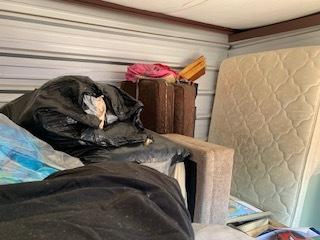 This unit appears to contain…Drive-Up Double Mattress Couch Love seat Vase Mirror Weed eater Rolling laundry bin Lamp Home decor Stero Mirror Bed frame Misc totes, bags