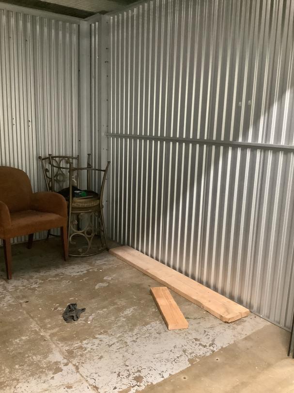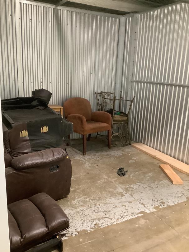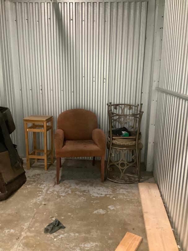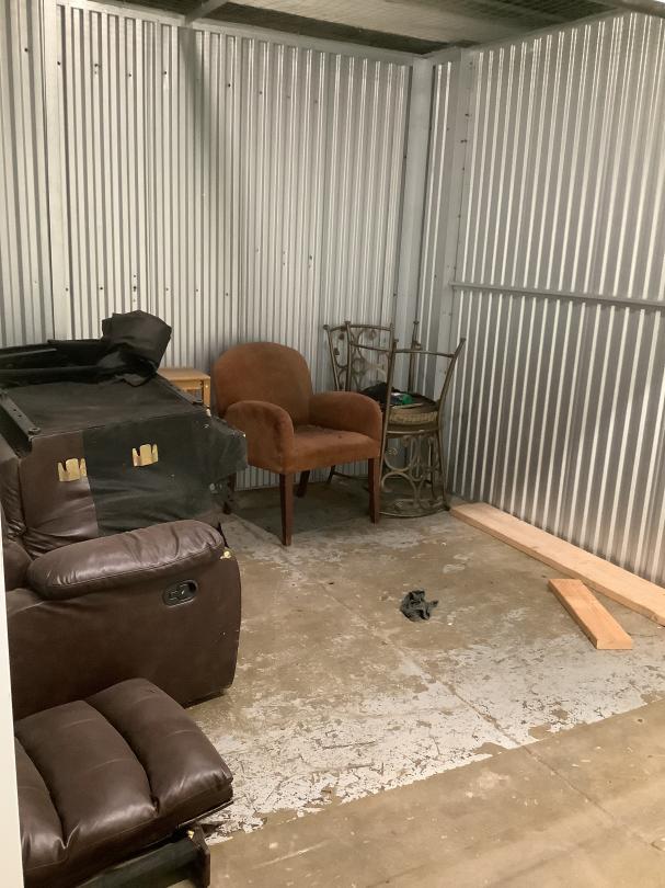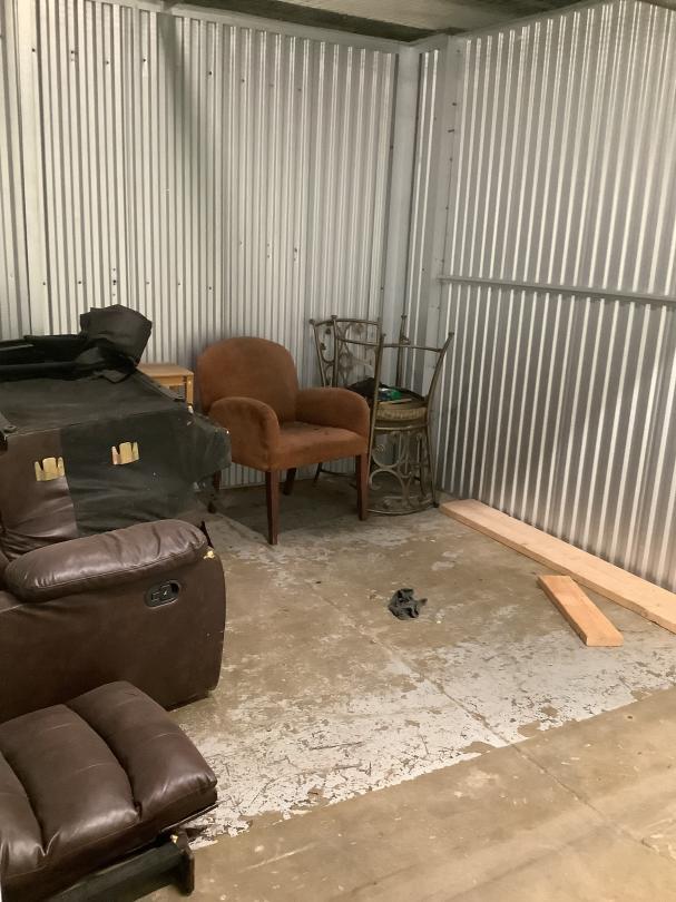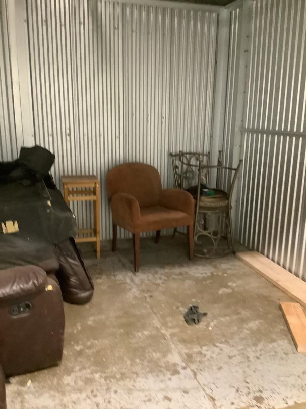 This unit appears to contain…two seat couch, small bedside table, living room chair, two kitchen chairs, pieces of wood Seal 1932524