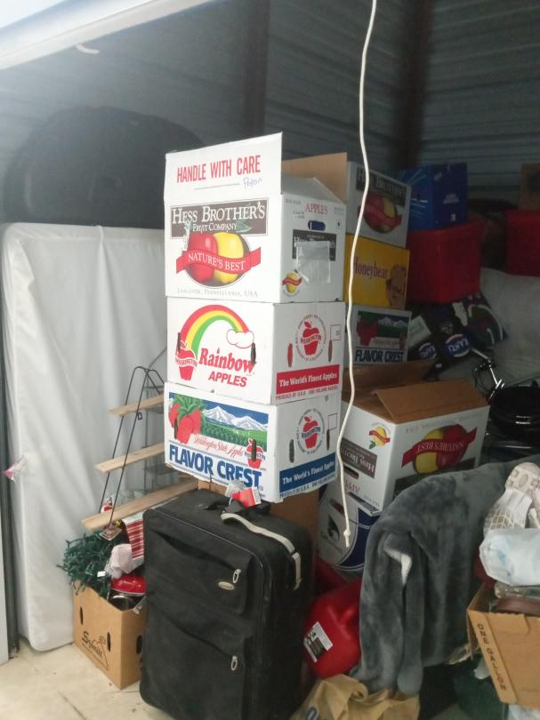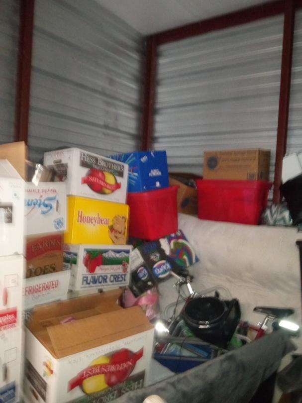 This unit appears to contain…Boxes, Totes, Bins, Household Items
