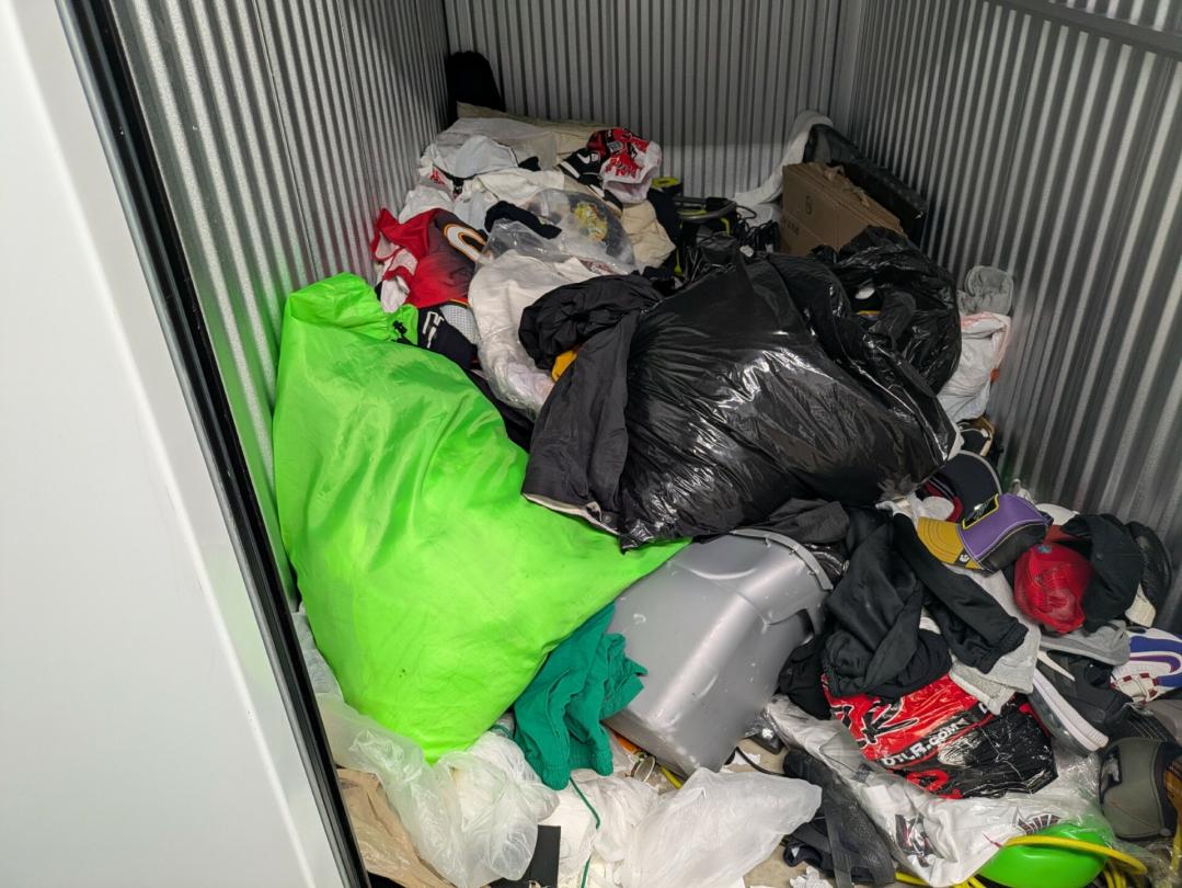 This unit appears to contain…TV,Plastic Bags,Plastic Containers,Clothing,Misc. Items