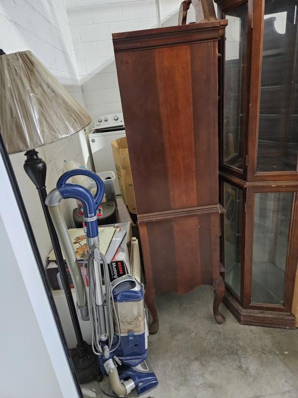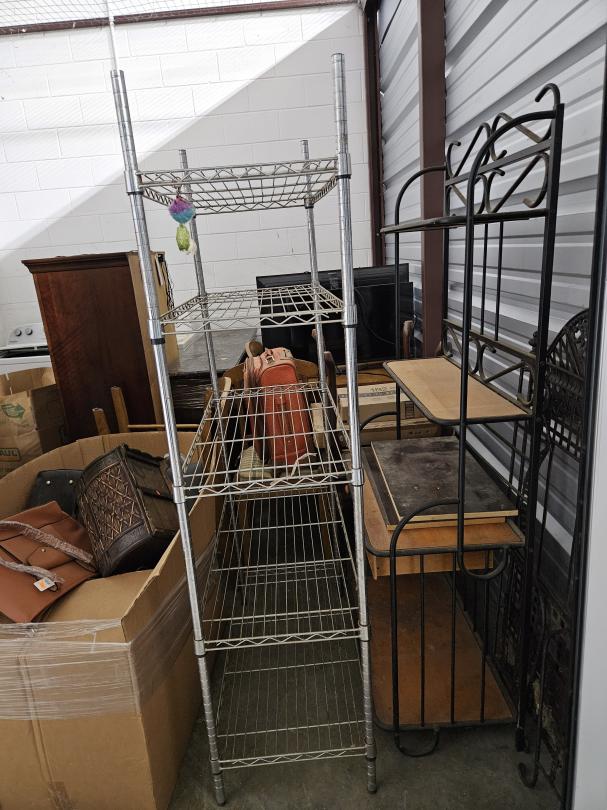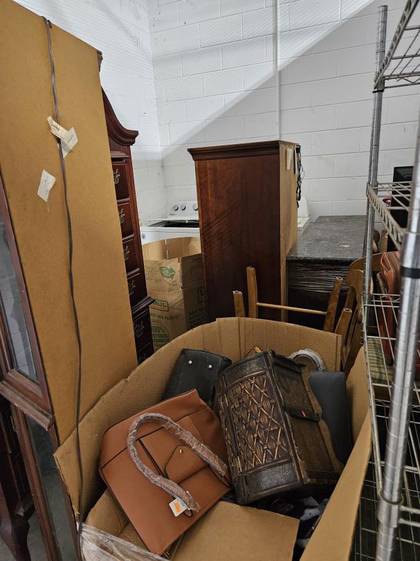 This unit appears to contain…RACKS, HIGH BOY, CURIO CABINET. PURSES, ENTERTAINMENT CENTER