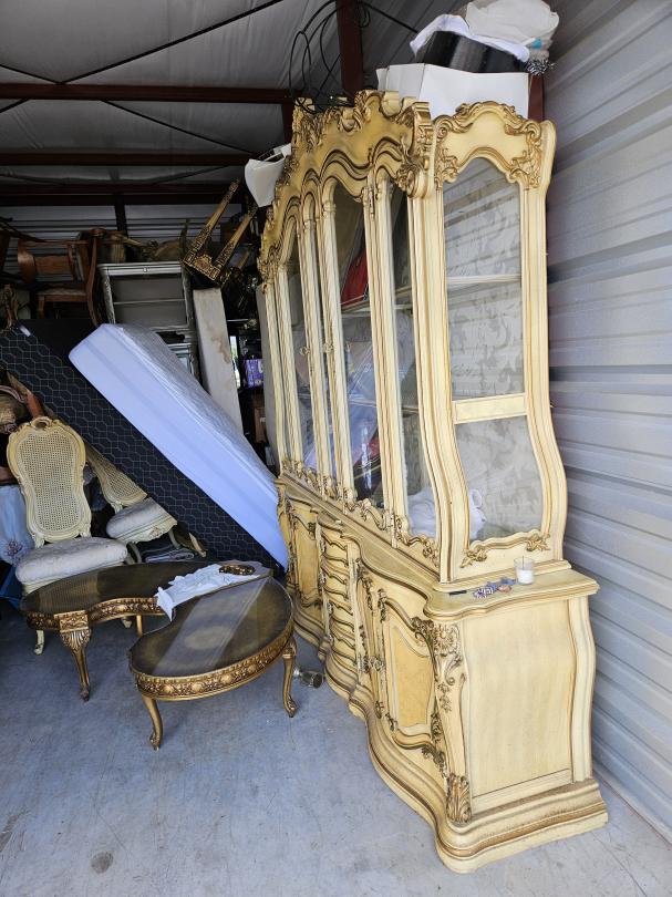 This unit appears to contain…CHINA CABINET, CHAIRS, COFFEE TABLE, END TABLES, BOX SPRING, MATTRESS