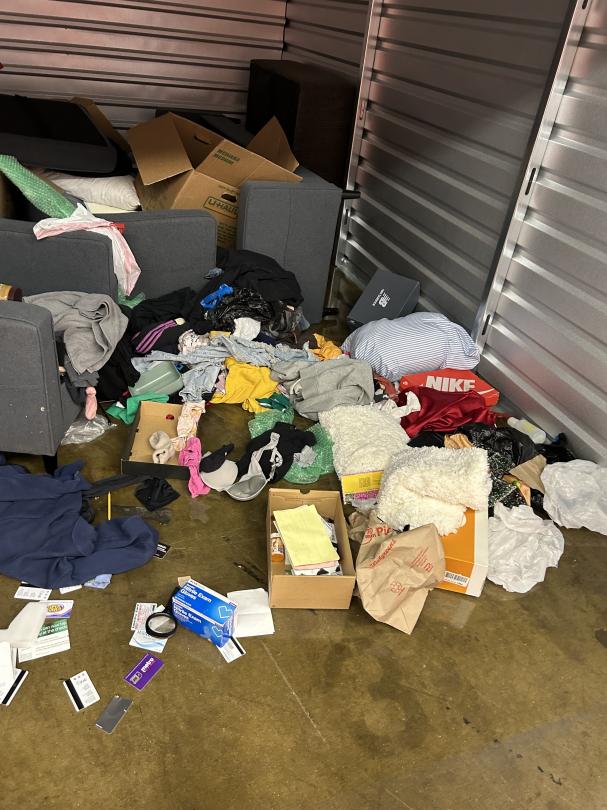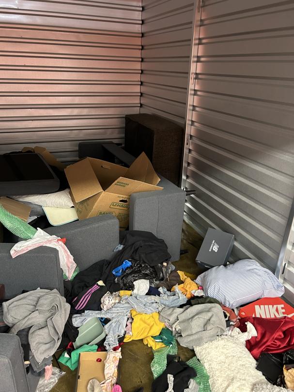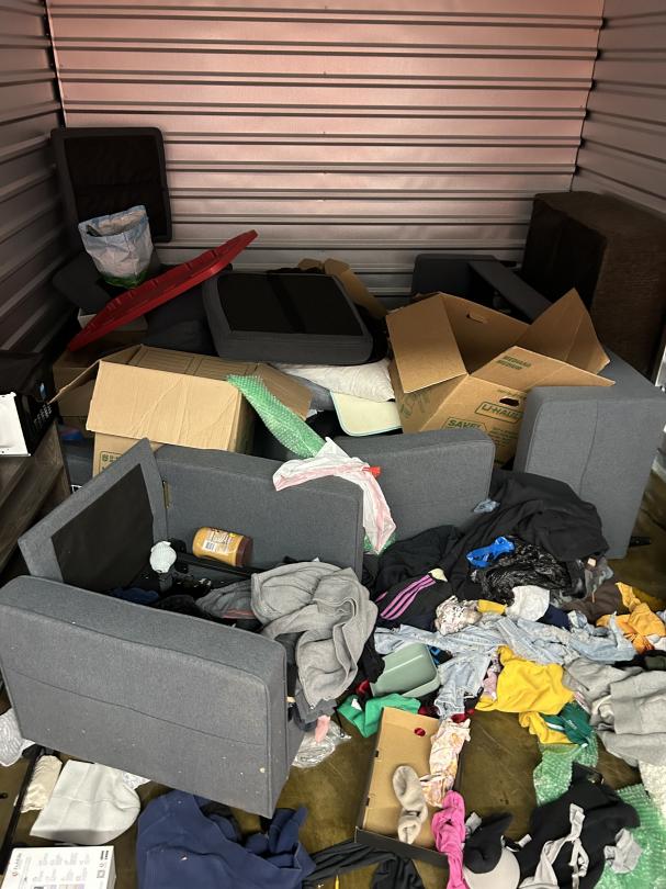 This unit appears to contain…READ ALL AUCTION RULES BEFORE BIDDING!!! Unit appears to contain: air fryer, couch, chair, coffee table, book shelf, microwave, clothes