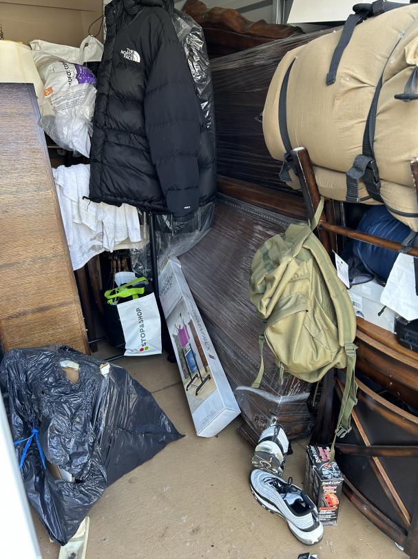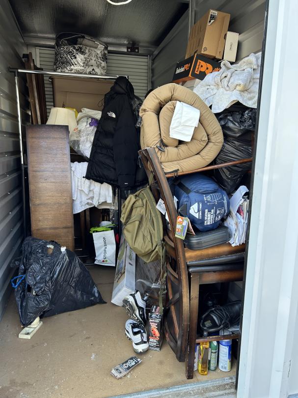 This unit appears to contain…READ ALL AUCTION RULES BEFORE BIDDING!!! Unit appears to contain: chairs, comforter, lamp shade, shoe boxes, totes, clothing rack, bags