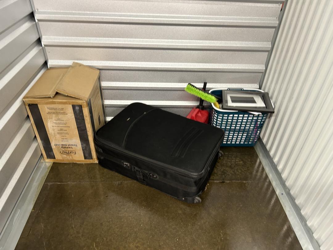 This unit appears to contain…READ ALL AUCTION RULES BEFORE BIDDING!!! Unit appears to contain: suitcase, basket, picture frame, gas can, box