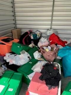 This unit appears to contain…Totes, Bags, Luggage, Clothing, Bucket, Boxes, Pictures and more.
