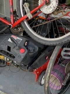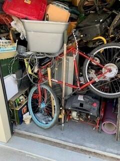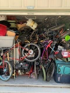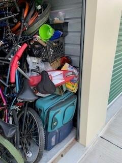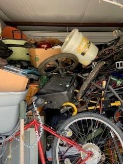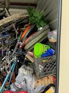 This unit appears to contain…Bikes!!!!! Bucket, Scooter, X-mas decor, Luggage, Totes and more.
