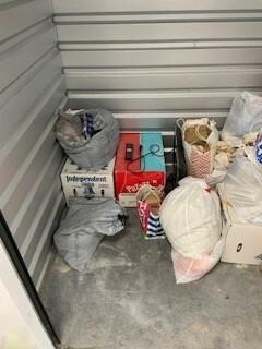 This unit appears to contain…Bags, Boxes, Candles, T.V., and more.