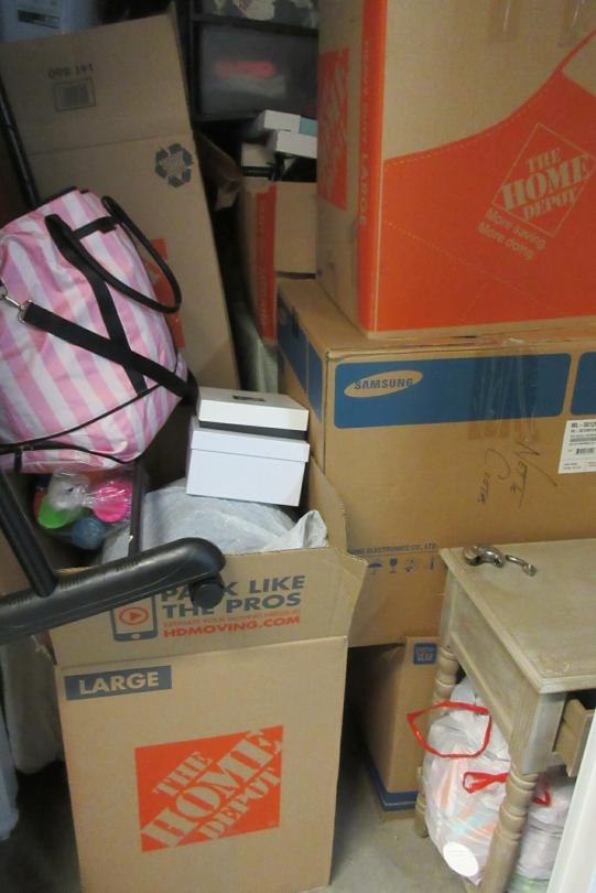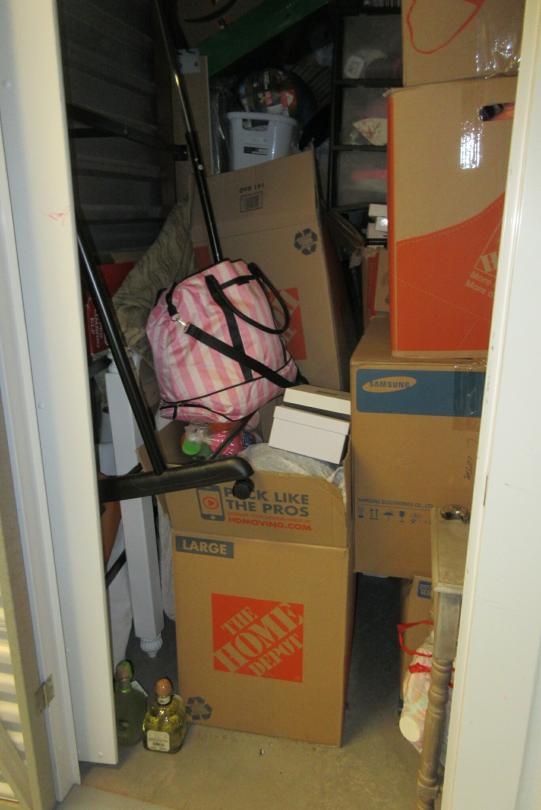 This unit appears to contain…End Table, Clothing, Bedding, Head Board, Frame, Boxes and Bags
