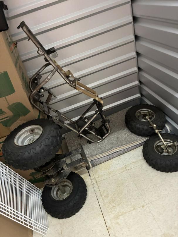 This unit appears to contain…FRAME & CHASSEY TO A QUAD BIKE RUG BOXES OF MISC ITEMS