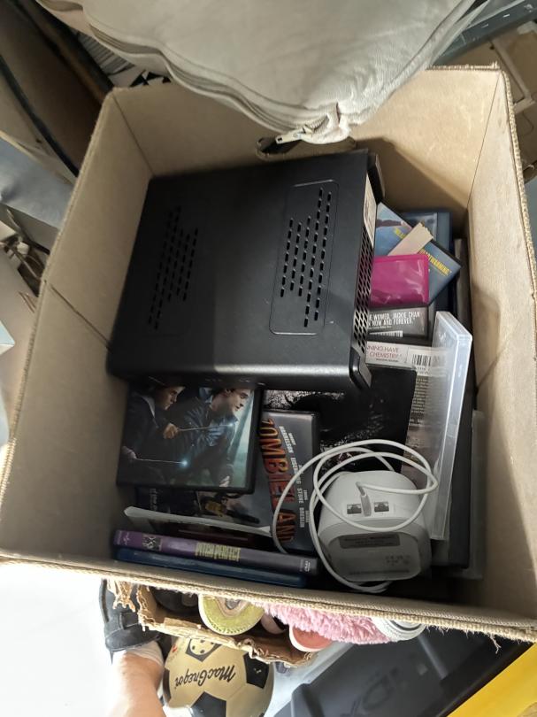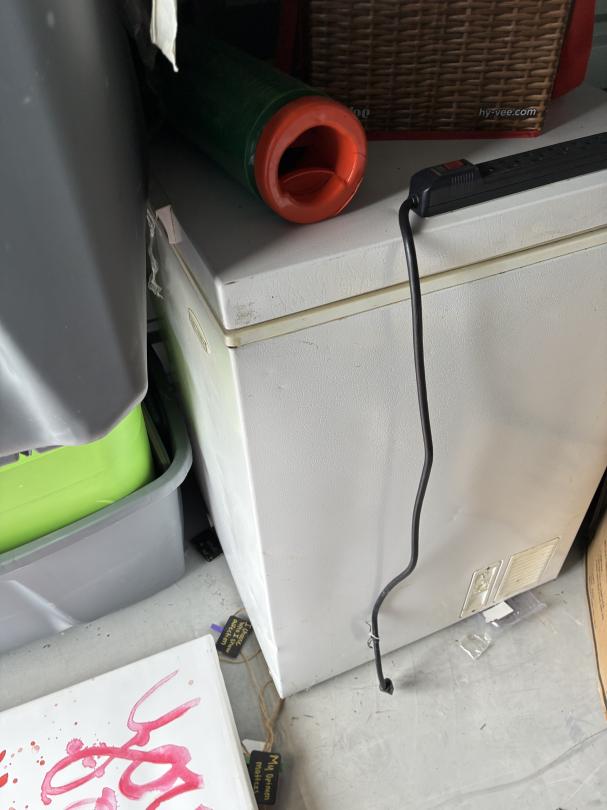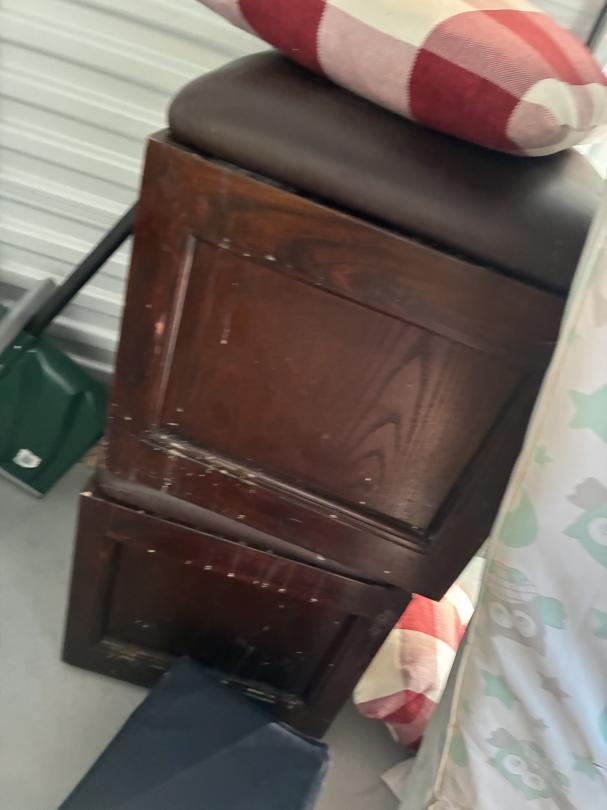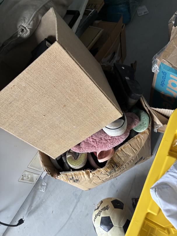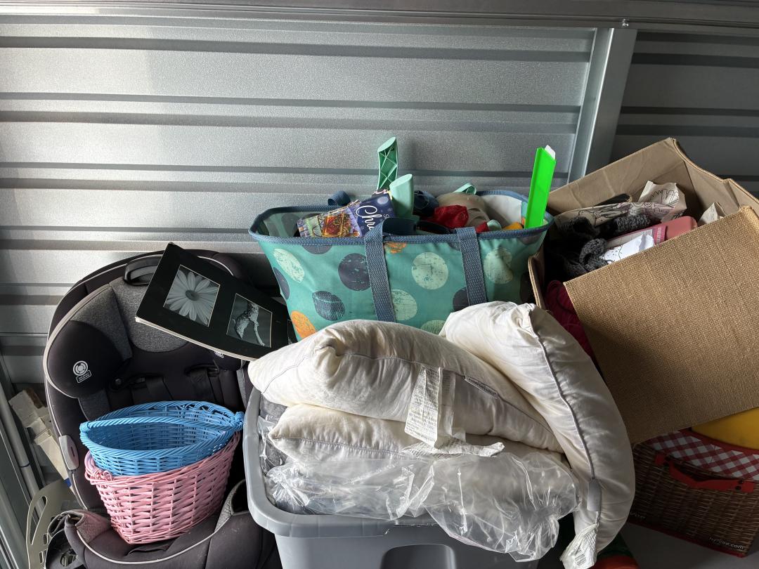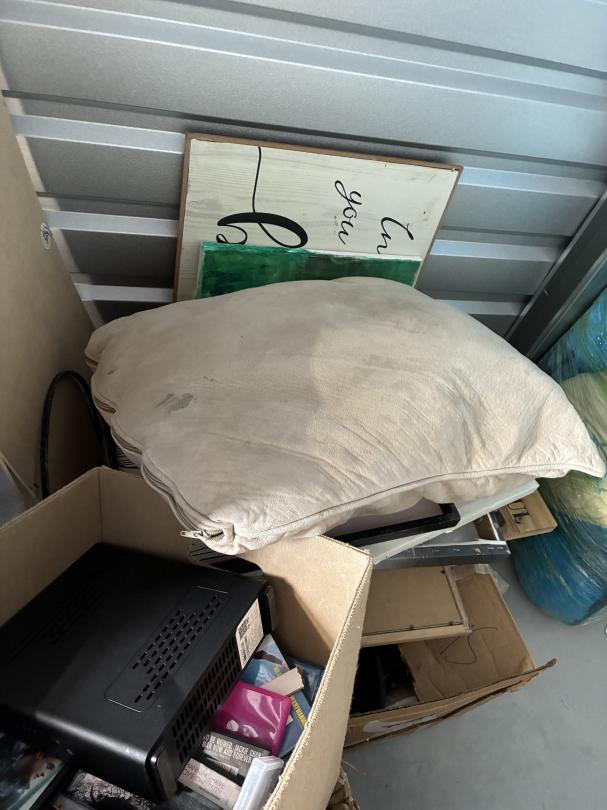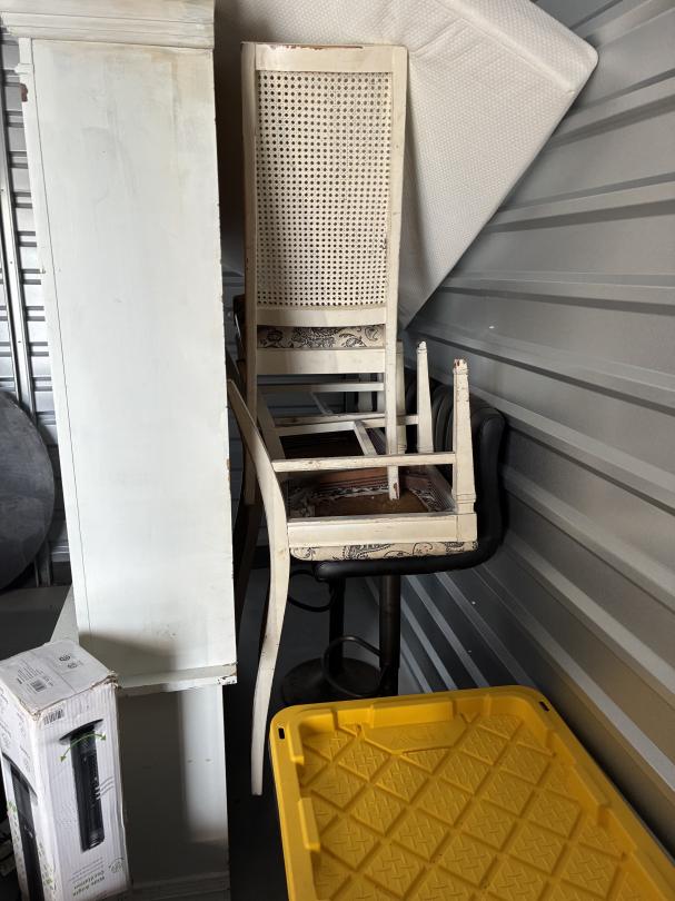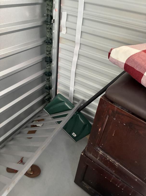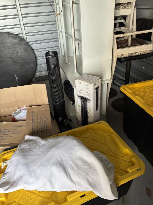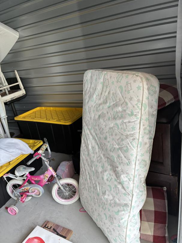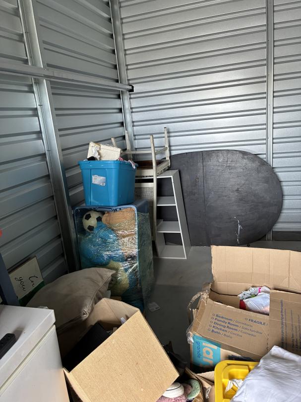 This unit appears to contain…Deep Freezer, tubs, shoes, pictures, table, luggage, hutch, baby beds, stools, car seat, kids bike