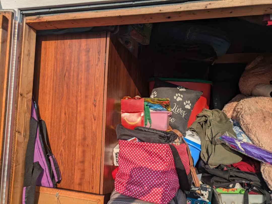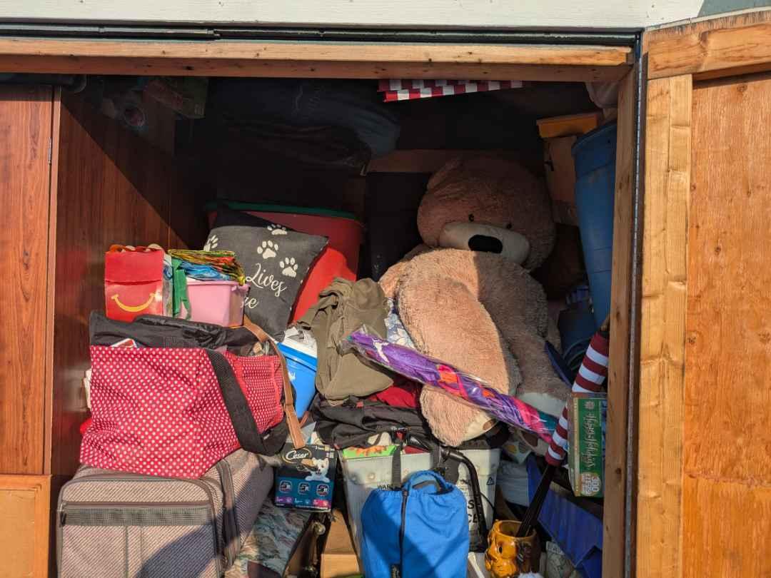 This unit appears to contain…Drive Up Access, Fenced & Gate, Security Cameras, 1st floor Toys, camping chair, suitcases, furniture, household items, boxes