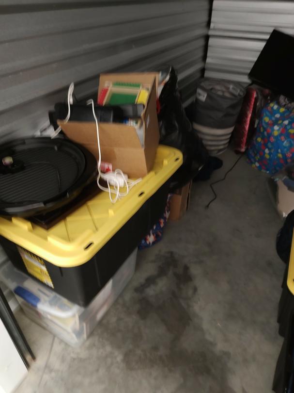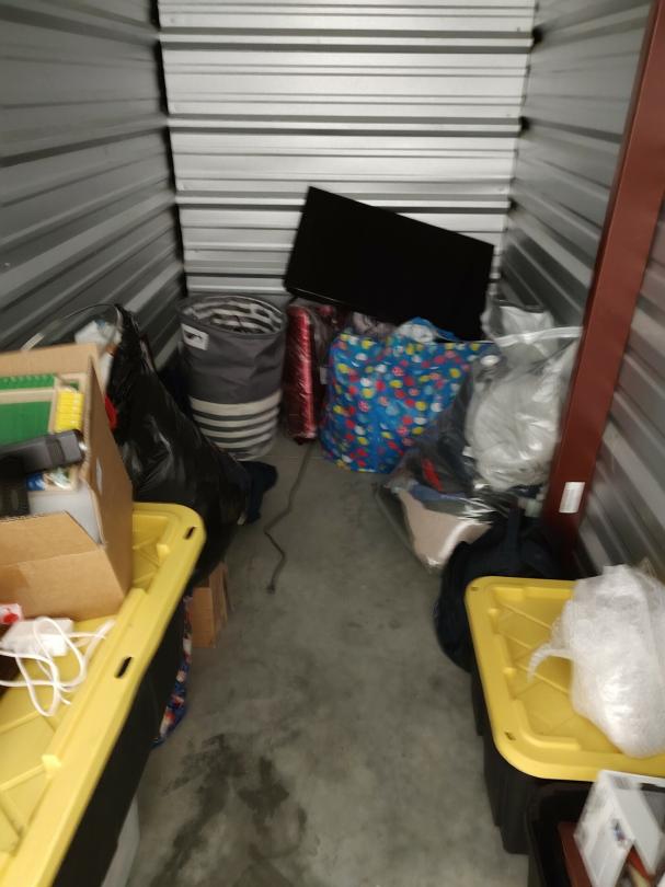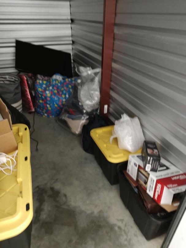 This unit appears to contain…TV,Plastic Bags,Plastic Containers,Misc. Boxes,Misc. Items,Laundry Baskets