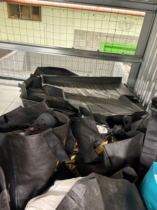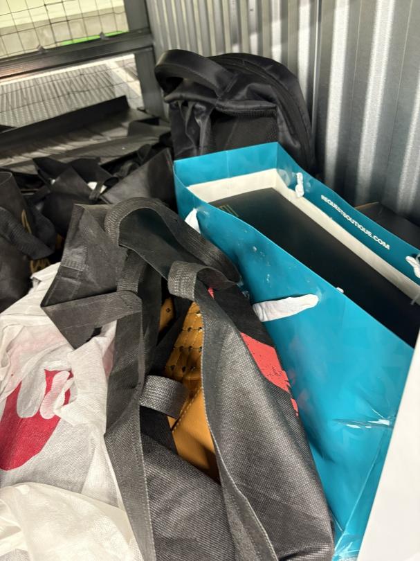 This unit appears to contain…unit appears to contain bags, purse, shoe boxes, shoes, backpack, car mats seal 4175440