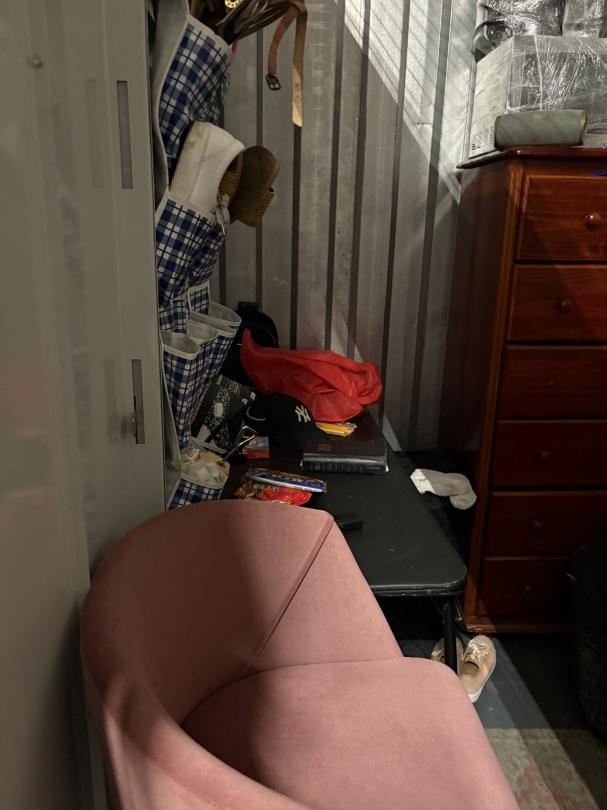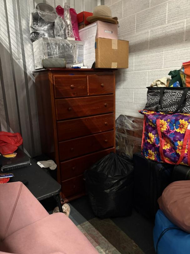 This unit appears to contain…unit appears to contain dresser, chairs, suitcases, shoes, table, bags, boxes, clothes, microwave, fan, hats seal 4175427
