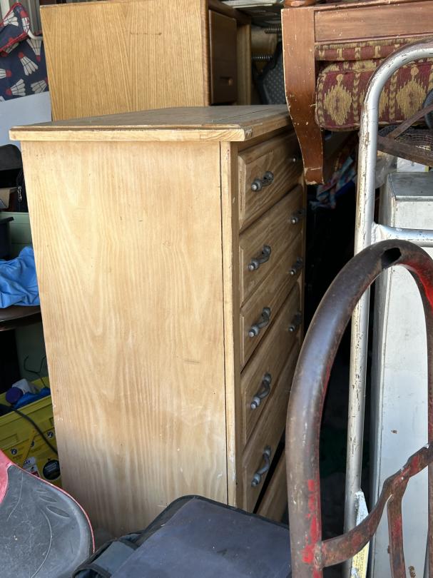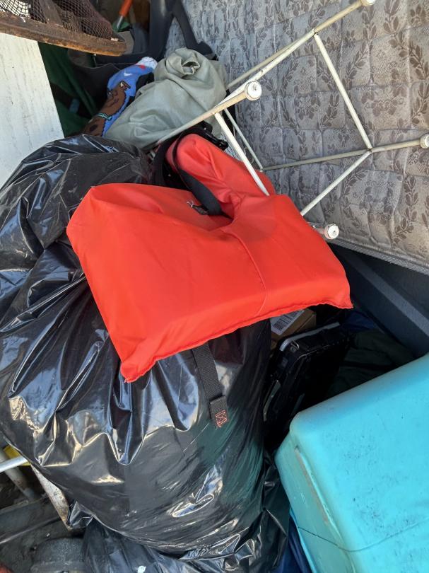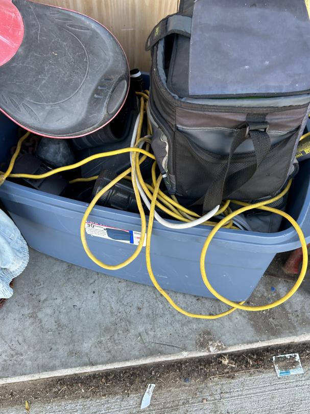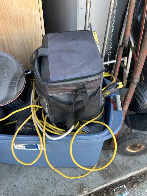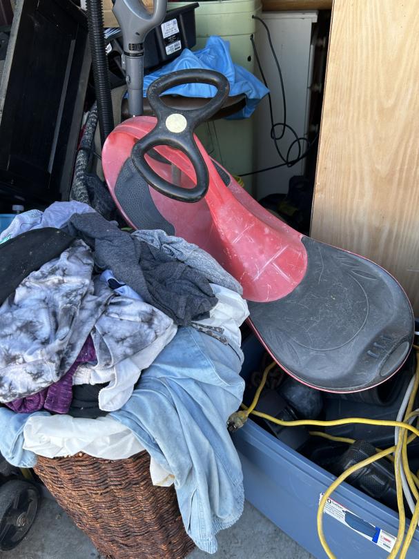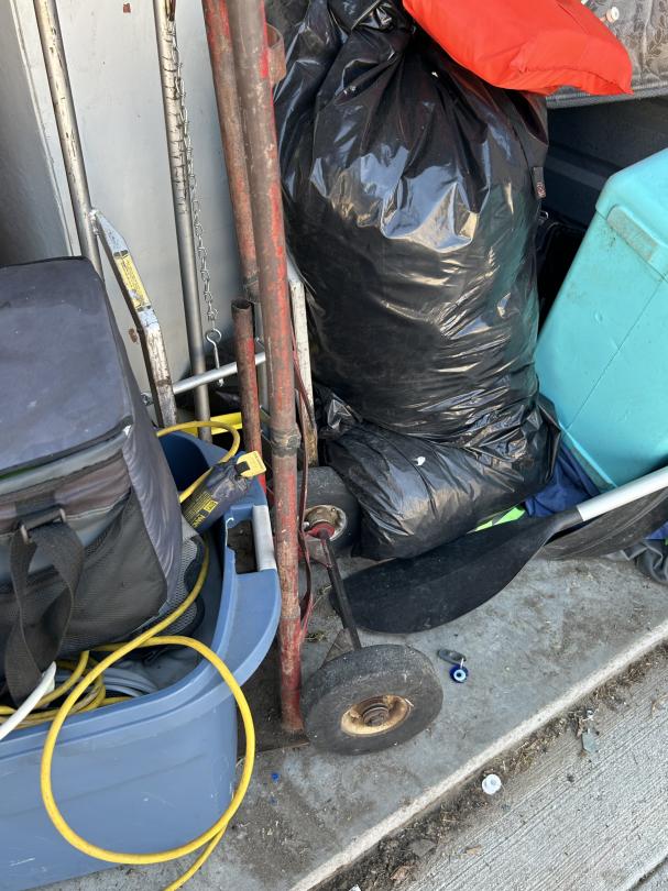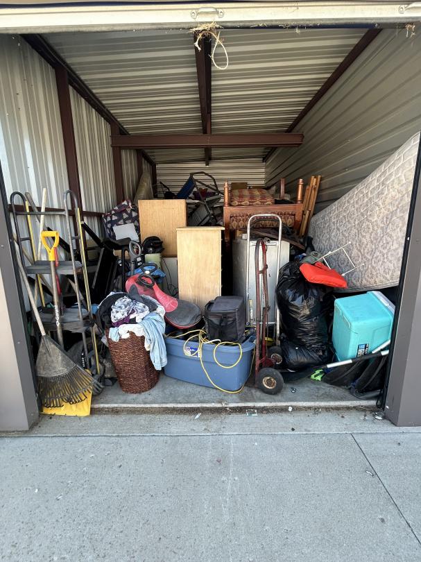 This unit appears to contain…Backpack, Bag, Bin, Boxes, Chairs, Cooler, Furniture, Shelves, Dog cage, Tools, Toys, Yard tools, Dollies, Extension cords, Saw, Kayak/Oars, Yard toys.