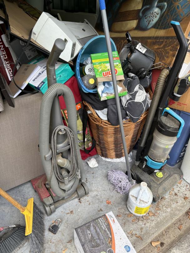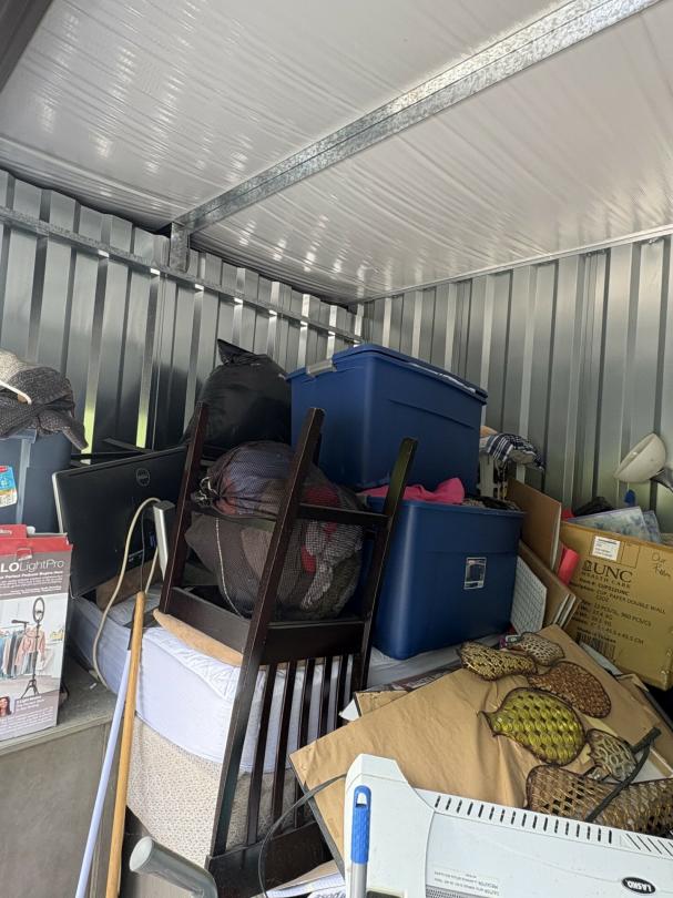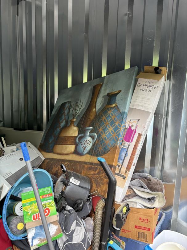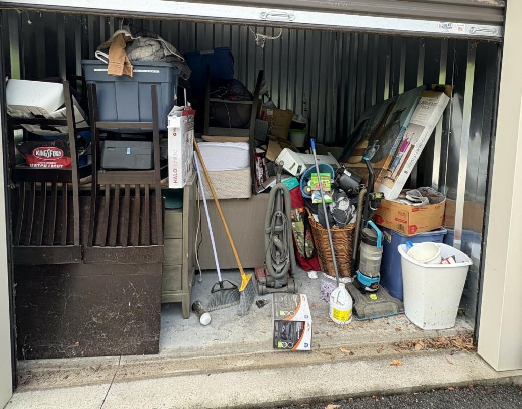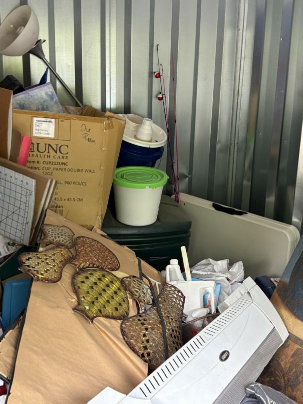 This unit appears to contain…Dresser, Lamps, Chairs, Table, Kitchenware, Plastic Bags, Plastic Containers, Misc. Boxes, Clothing, Toys, Misc. Items, Kids Bikes