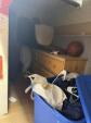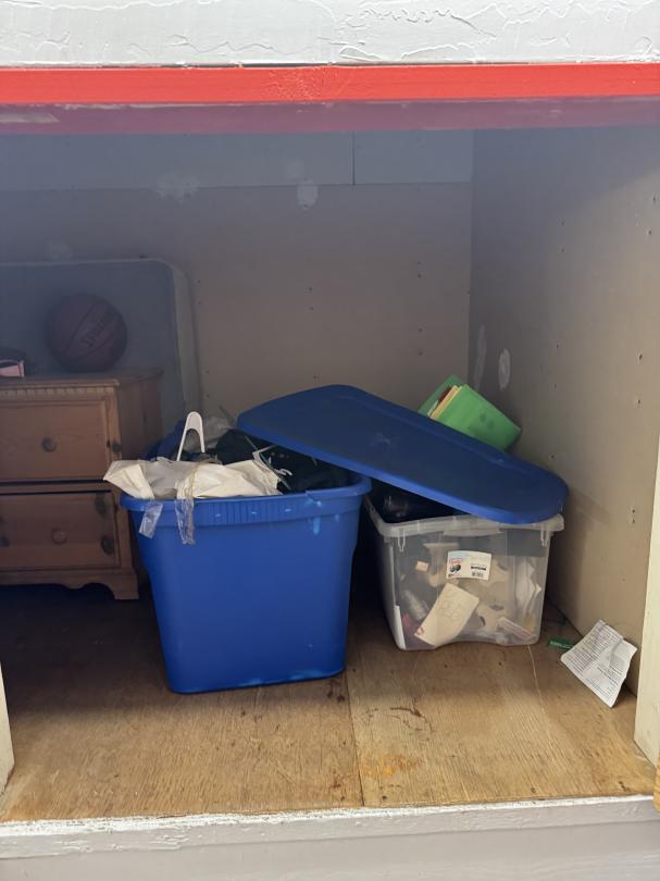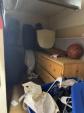 This unit appears to contain…Tires, Dresser, totes, clothes, hangers, basketball, chair,
