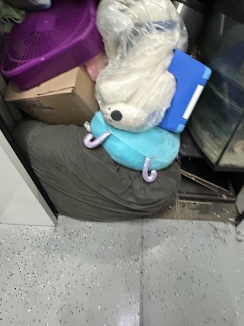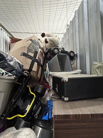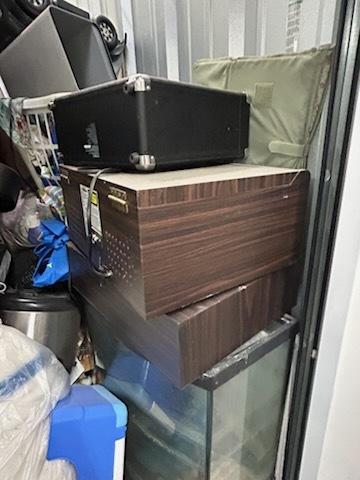 This unit appears to contain…Bean Bag, Bags,Bins, Boxes,Clothing,Fan, Furniture,Stereo, Toys,Baby items,Fish Tank,