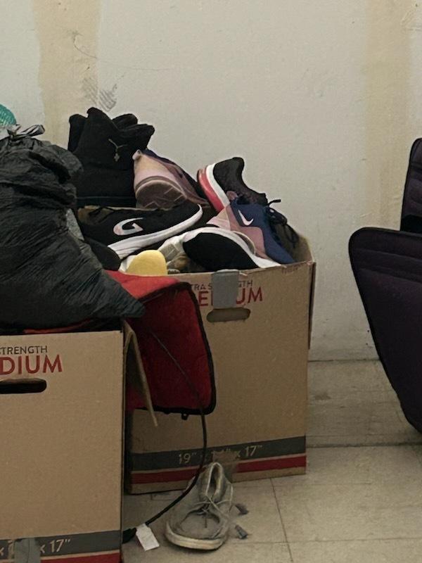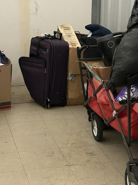 This unit appears to contain…Bags,Bins, Boxes, Clothing, Shoes, Wagon, Suitcase, Toys, Boots