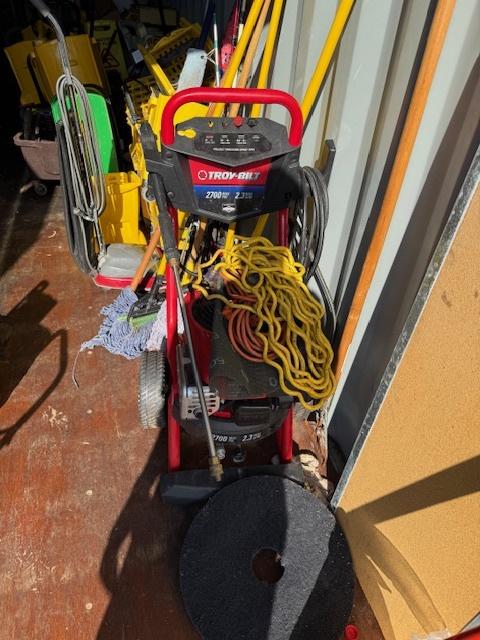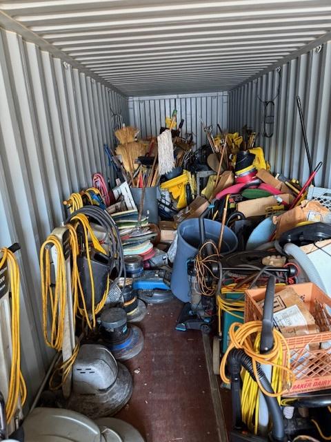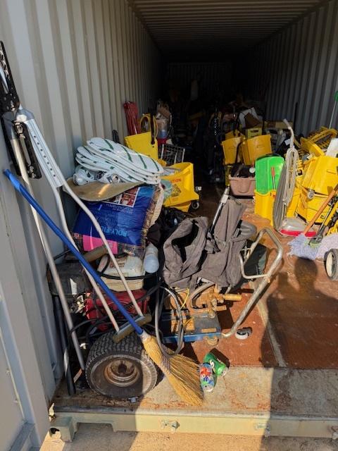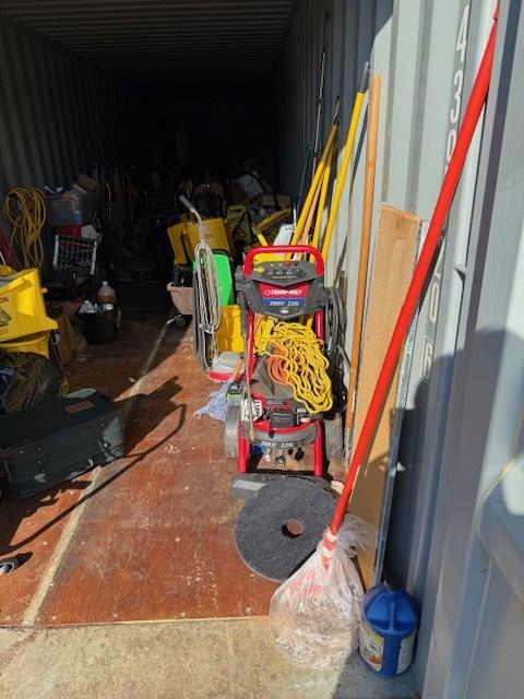 This unit appears to contain…Floor buffers, Floor Fans, Pressure Washers, Commercial Cleaning Equipment.