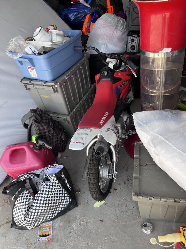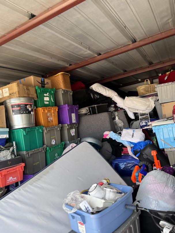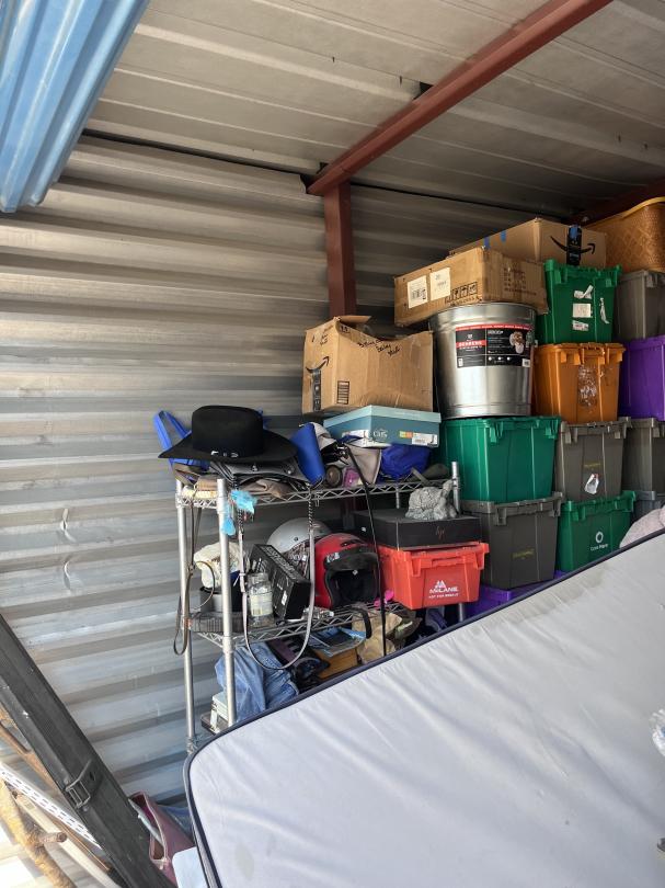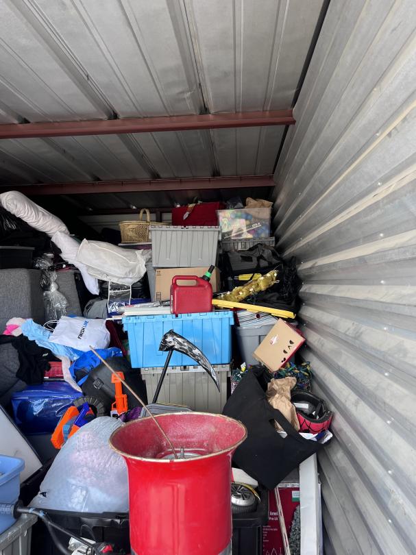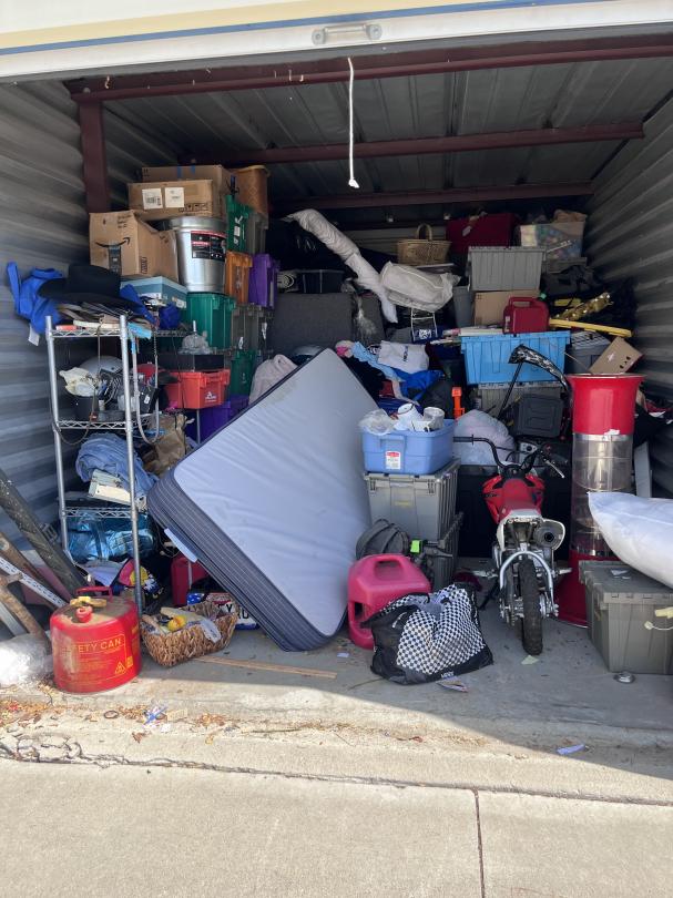 This unit appears to contain…Bags, bins, boxes, totes, bicycle, mini bike, couches, tools, clothes, furniture, toys